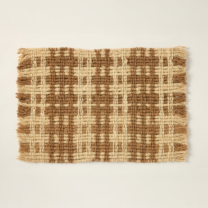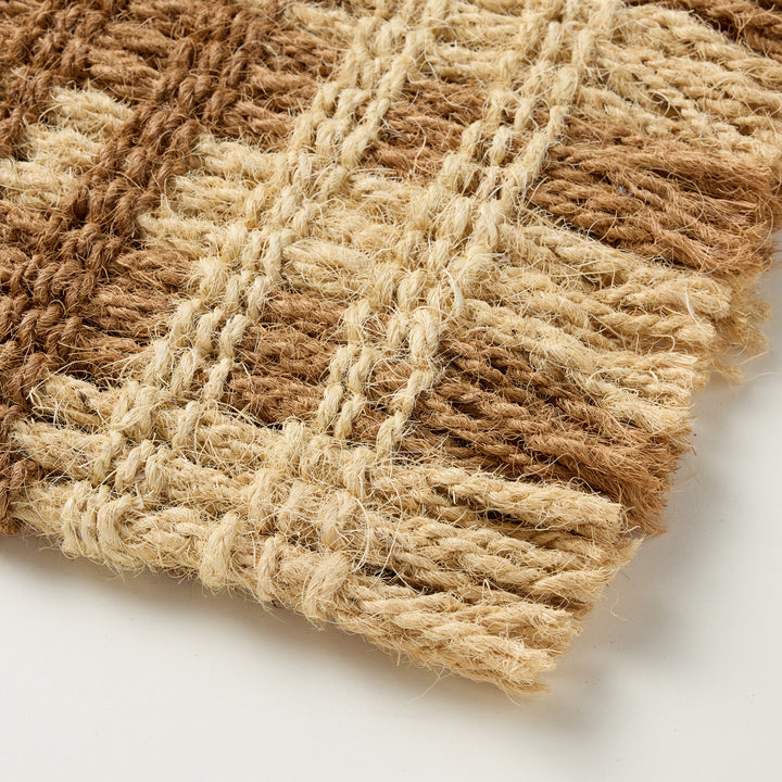In a soothing palette of neutral tones, this Plaid Handwoven Doormat features intersecting lines crafted from natural coir rope, offering a refined yet casual take on classic plaid. Made from sustainable, biodegradable materials, it effectively traps dirt to keep your entryway clean. Measuring 1" thick, this durable mat is easy to maintain—simply shake, sweep, or vacuum.