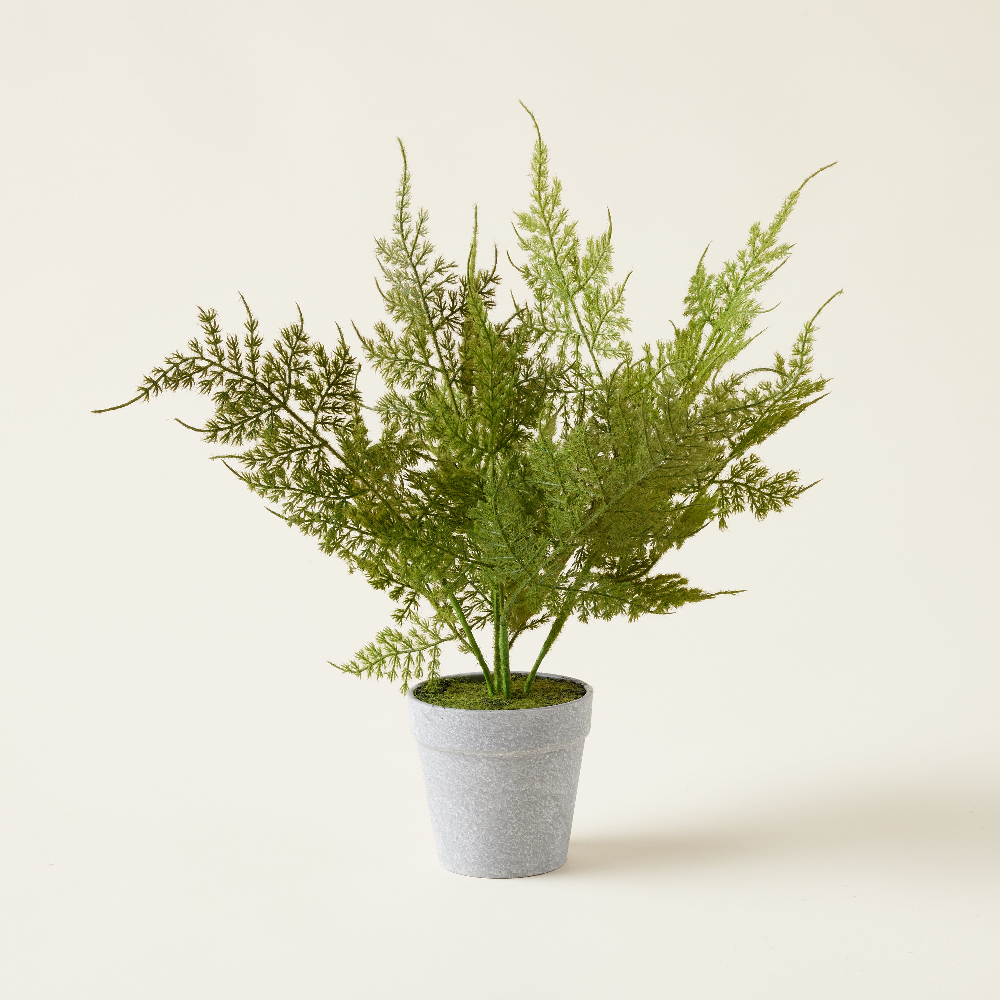 Add a touch of nature indoors with this beautifully crafted Plumosa Fern Drop-in. Mimicking the intricate, feathery fronds of the actual plant, this 13" drop-in provides a low-maintenance, year-round green accent in any space. Featuring a cement pot, elevate this fern by styling in a decorative pot or planter.