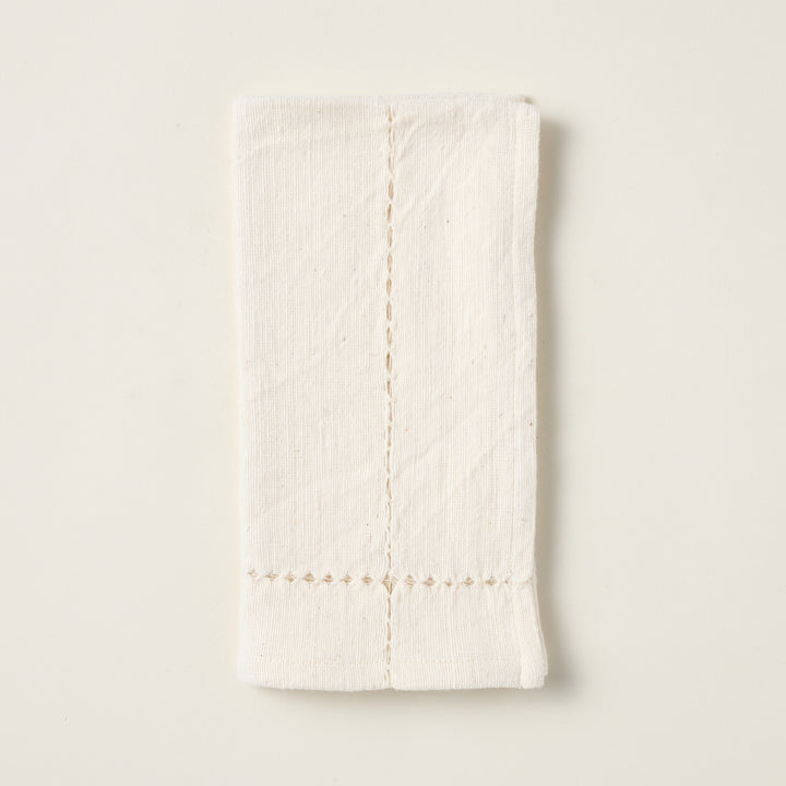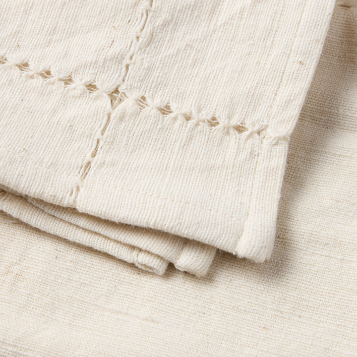 Expertly handcrafted using traditional Ethiopian techniques, this Pulled Cotton Napkin features delicate hand-stitched accents on all four edges. Made with soft, hand-spun cotton, these generously sized 20" x 20" dinner napkins have a unique texture and will only become more absorbent with each wash.