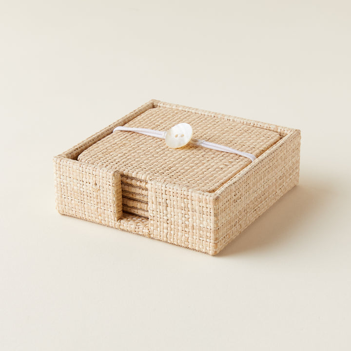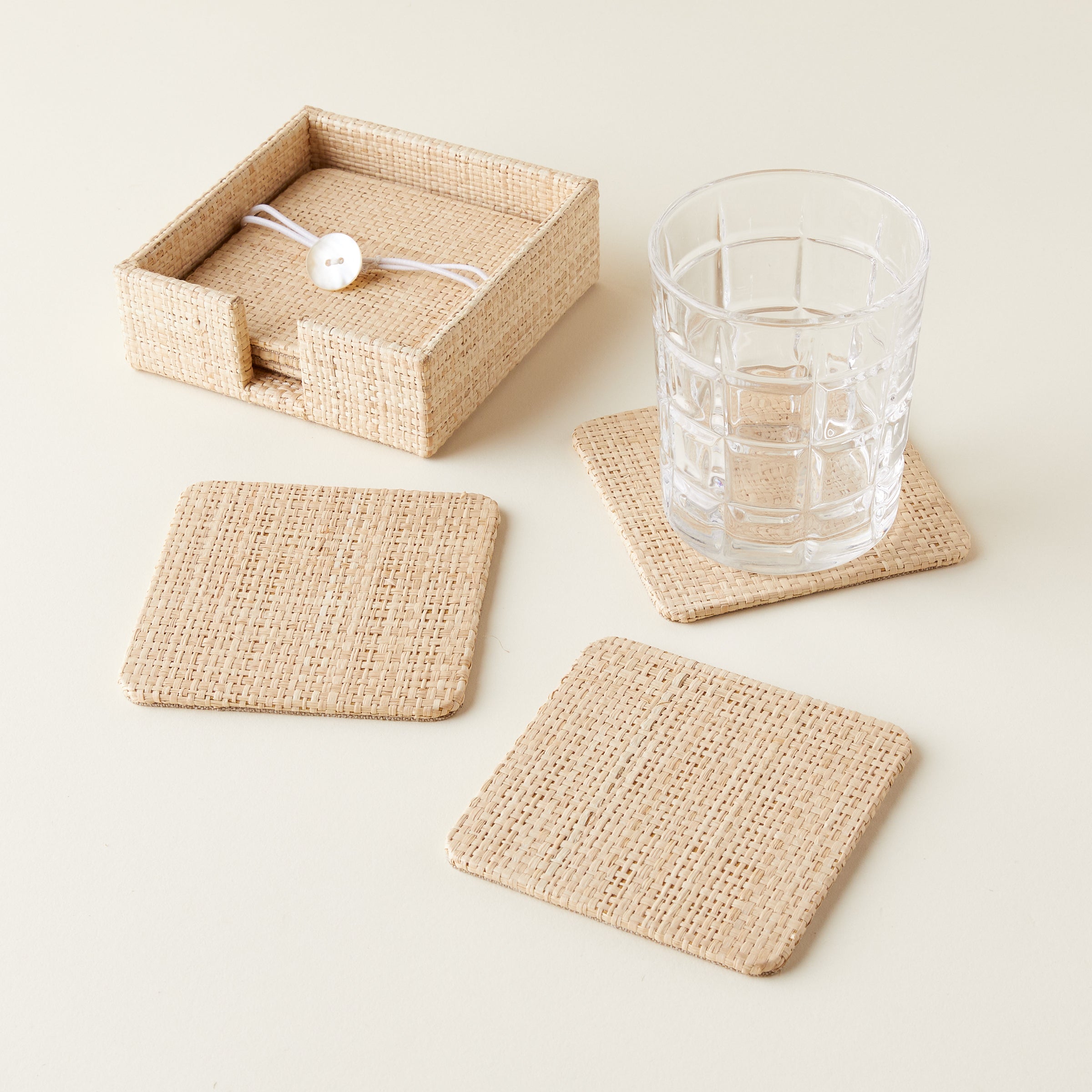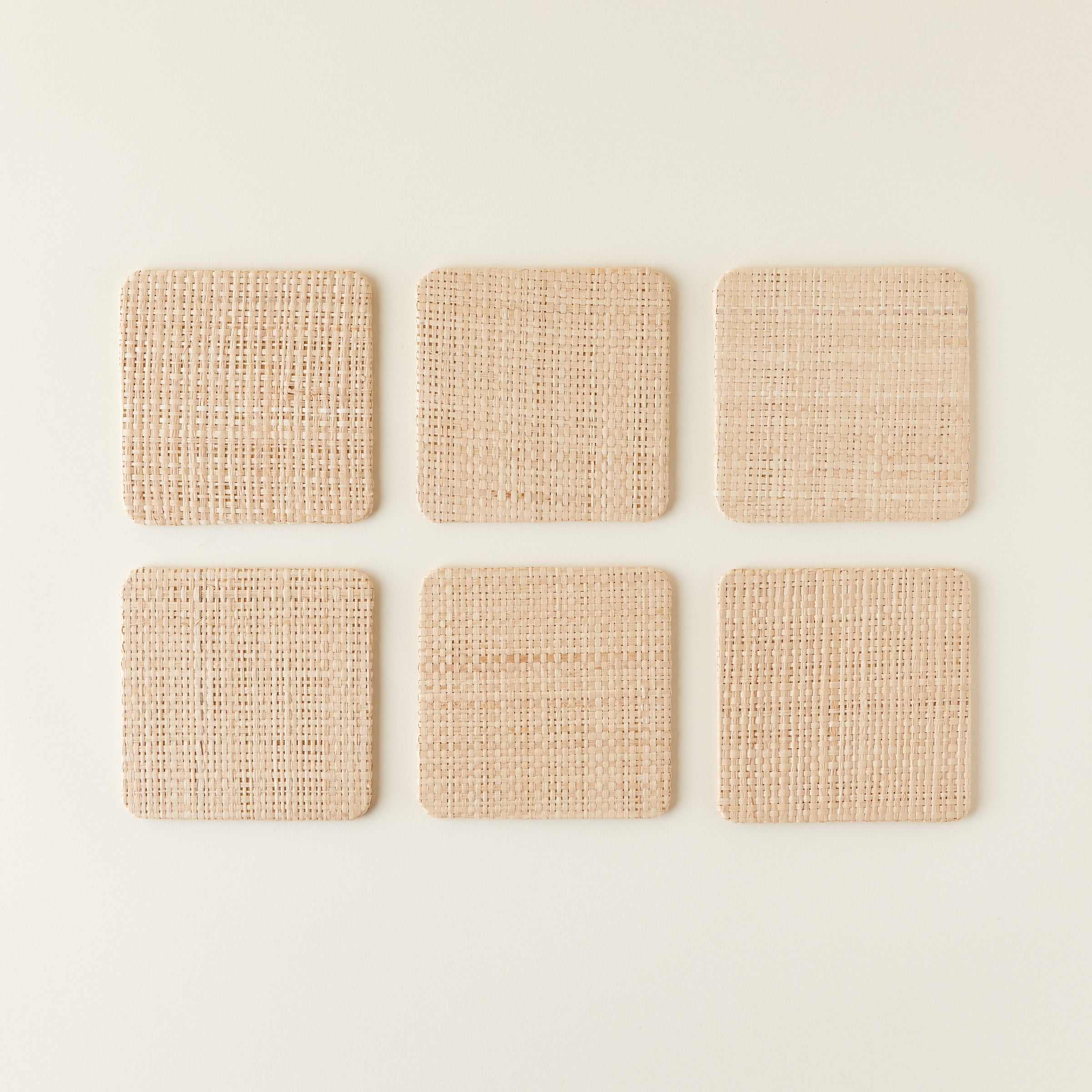 Crafted from natural rattan, our Raffia Coaster Set adds a casual touch to your decor. This set of six is perfect for gatherings or everyday use and protects your surfaces from damage. Layer in texture and visual interest with this practical addition.