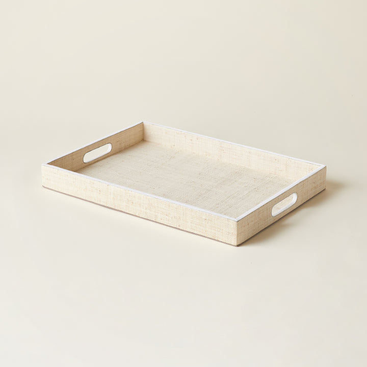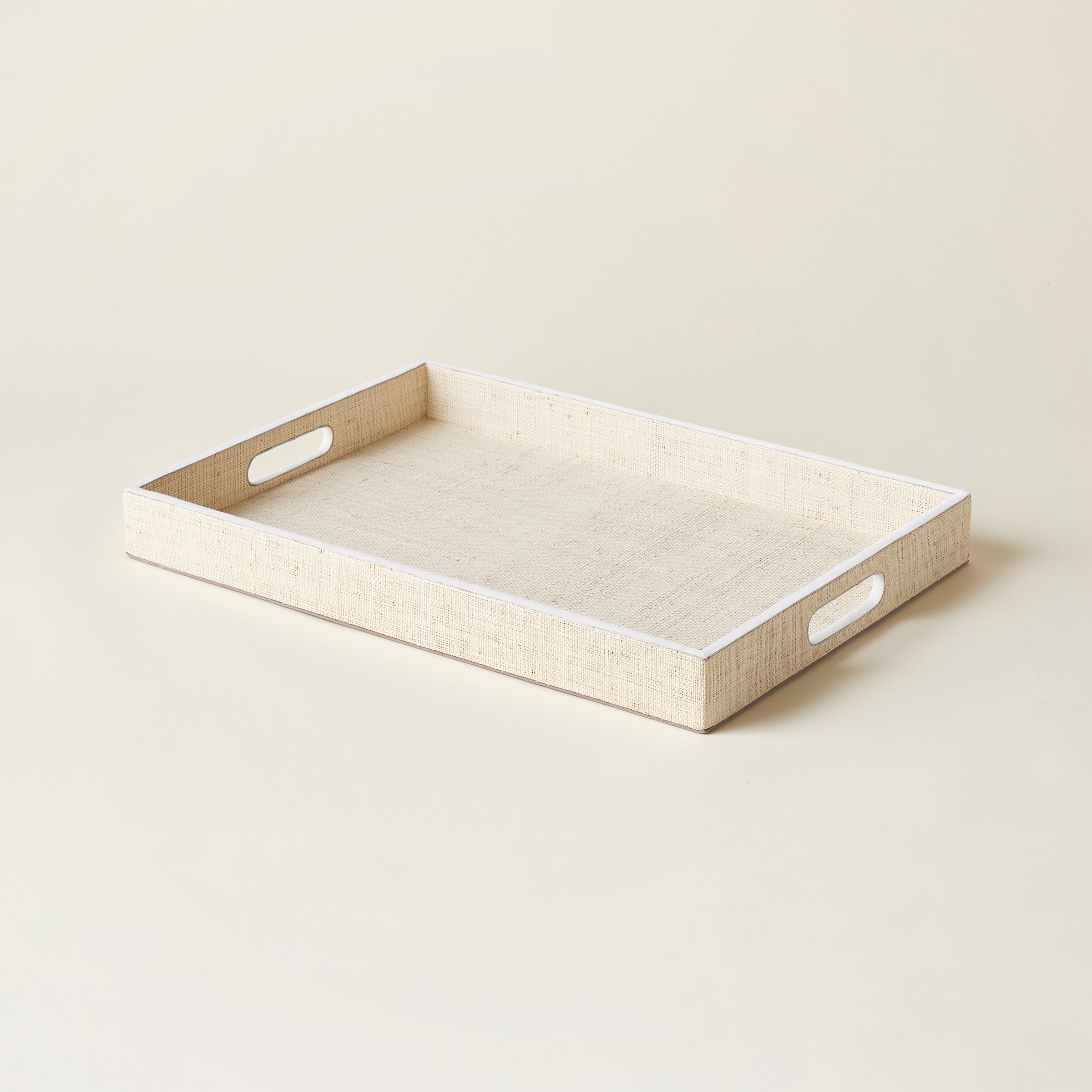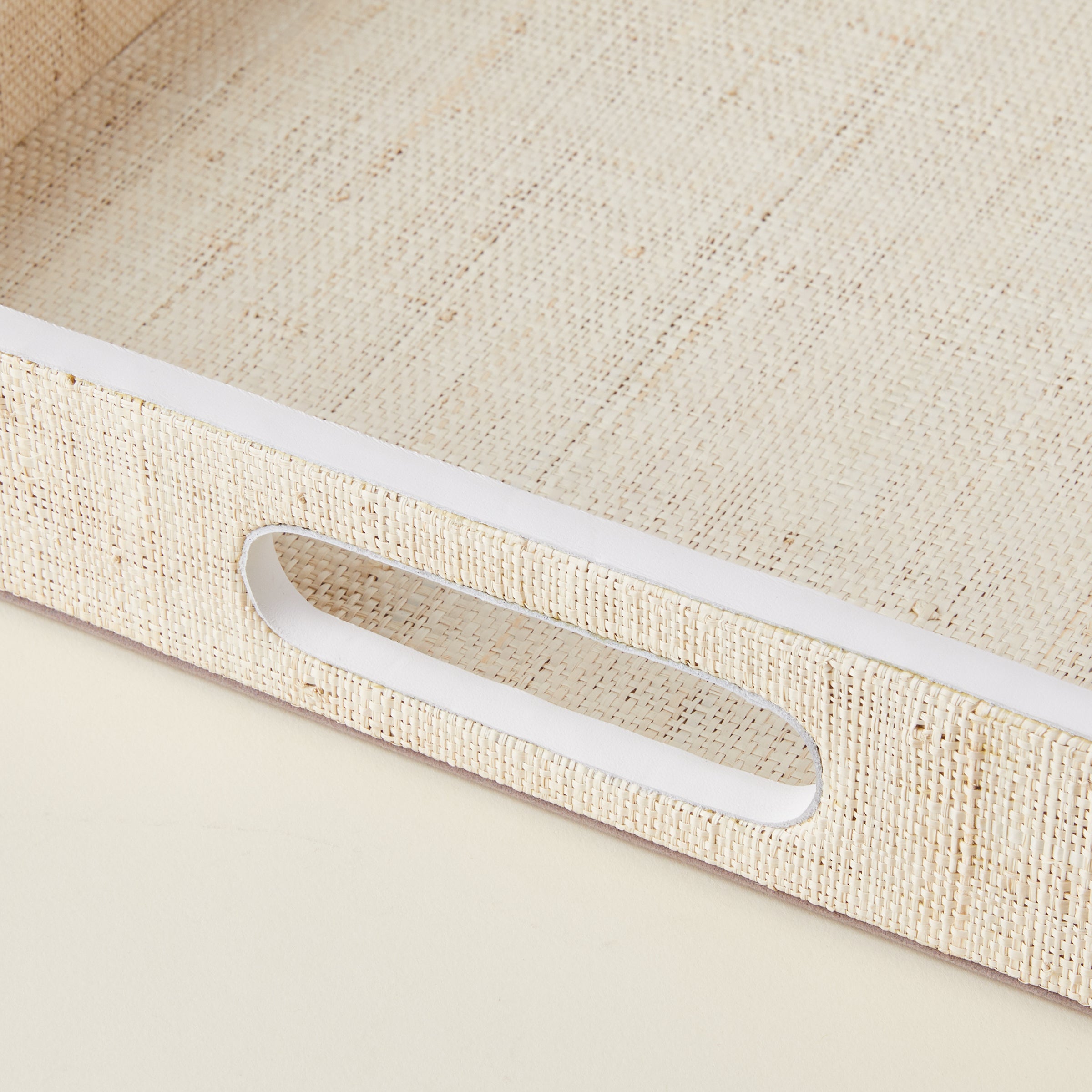 Expertly crafted from natural fiber raffia and accented with leather trim, the Raffia Serving Tray is a stylish and durable addition to any serving set. The natural fibers lend an organic touch while the leather trim elevates this piece. Perfect for serving snacks, drinks, or displaying décor, this tray is a must-have for any host or hostess.