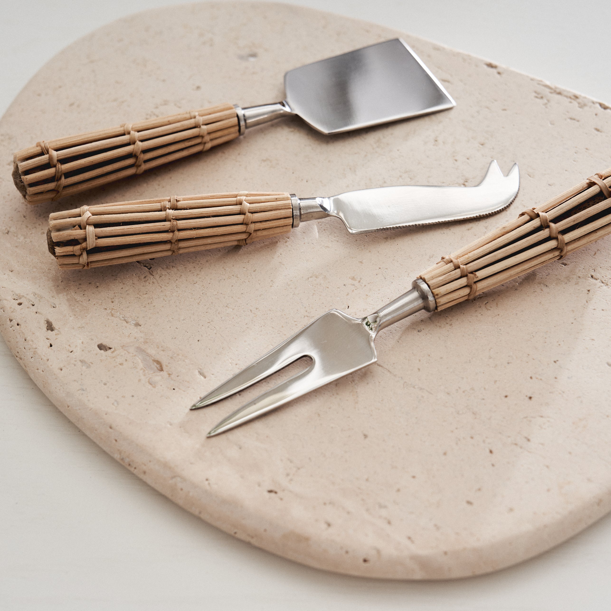 Expertly crafted, these Rattan Cheese Knives feature durable stainless steel blades and elegant rattan handles. This set of 3 knives adds a touch of natural charm to any cheese spread, making it the perfect addition to your entertaining collection.