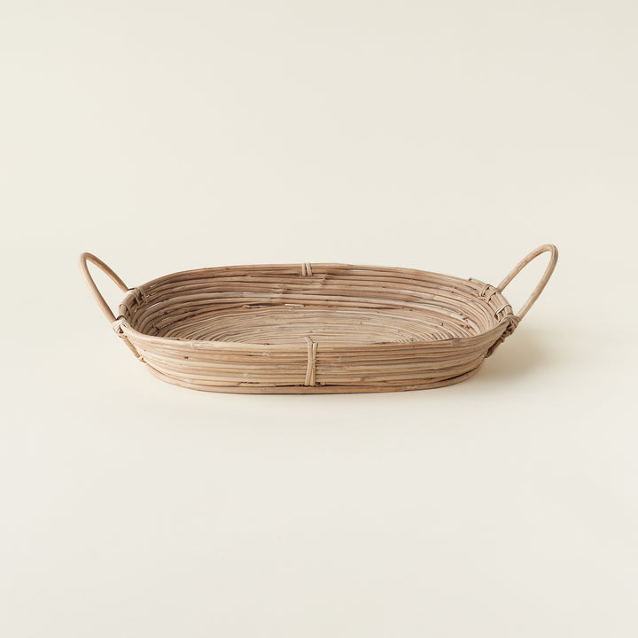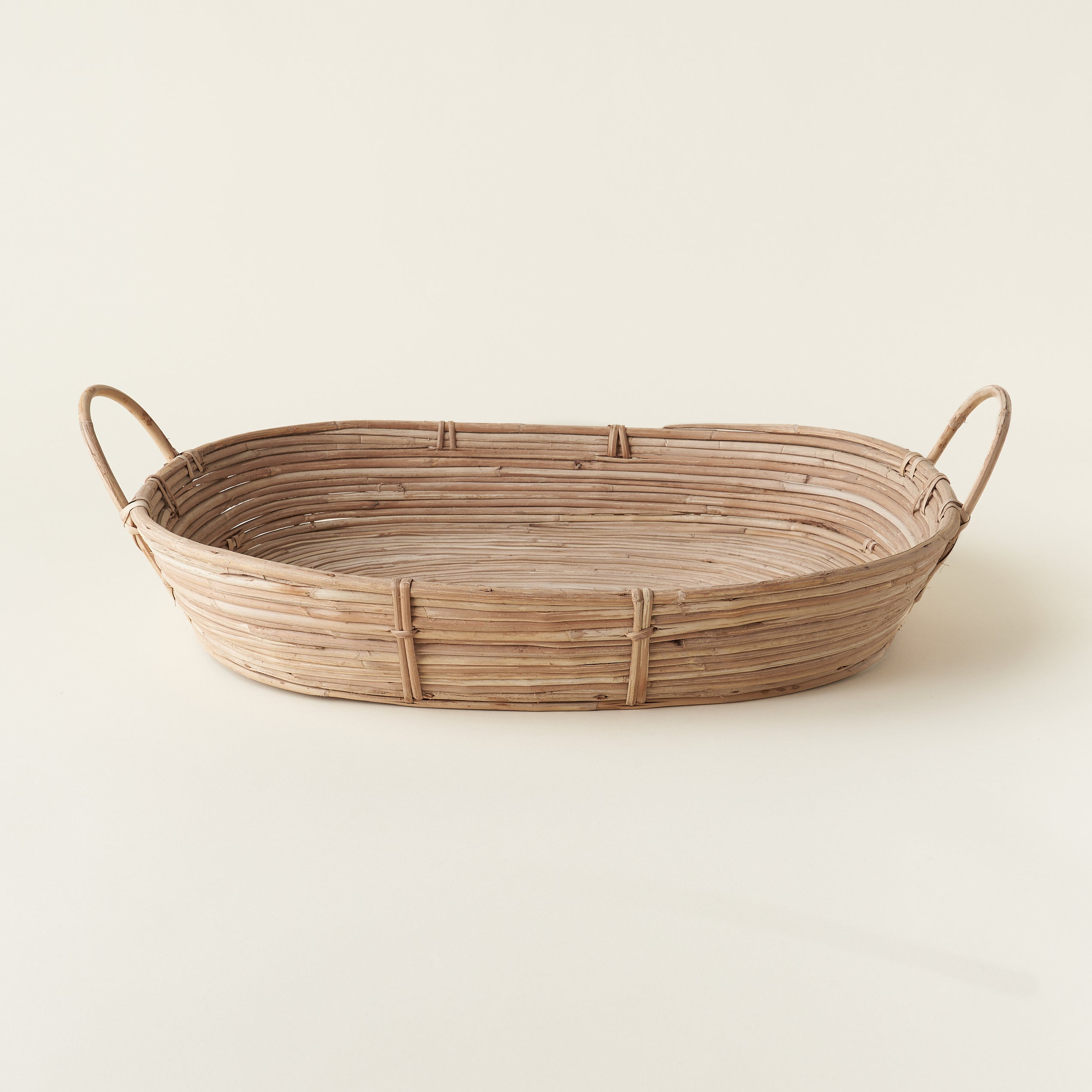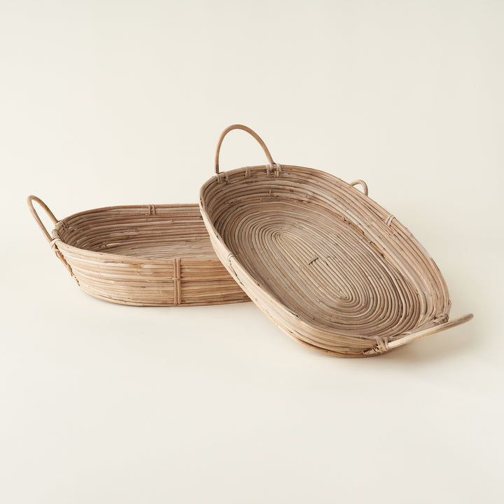 Expertly crafted from all-natural rattan, these hand-woven trays with handles are both functional and stylish. The perfect addition to any home, these trays provide a unique and eco-friendly way to serve and organize. Available in various sizes, these trays are versatile and durable.