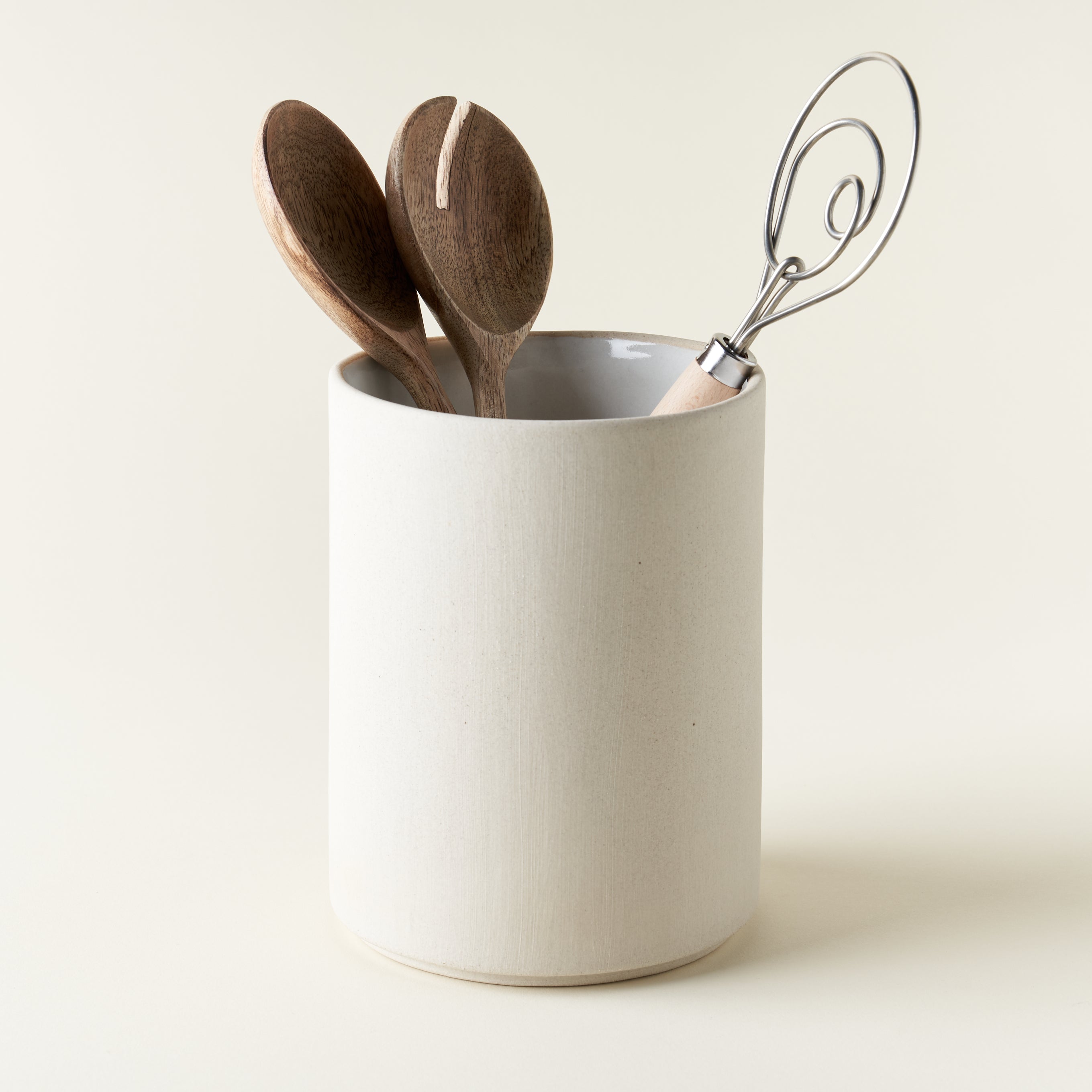 Expertly crafted from raw, sturdy stoneware, this utensil crock is the perfect size for organizing all your kitchen tools. The unglazed finish adds a touch of warmth to any kitchen, while providing a durable and practical storage solution. Make use of this classic piece and keep your cooking essentials within reach.