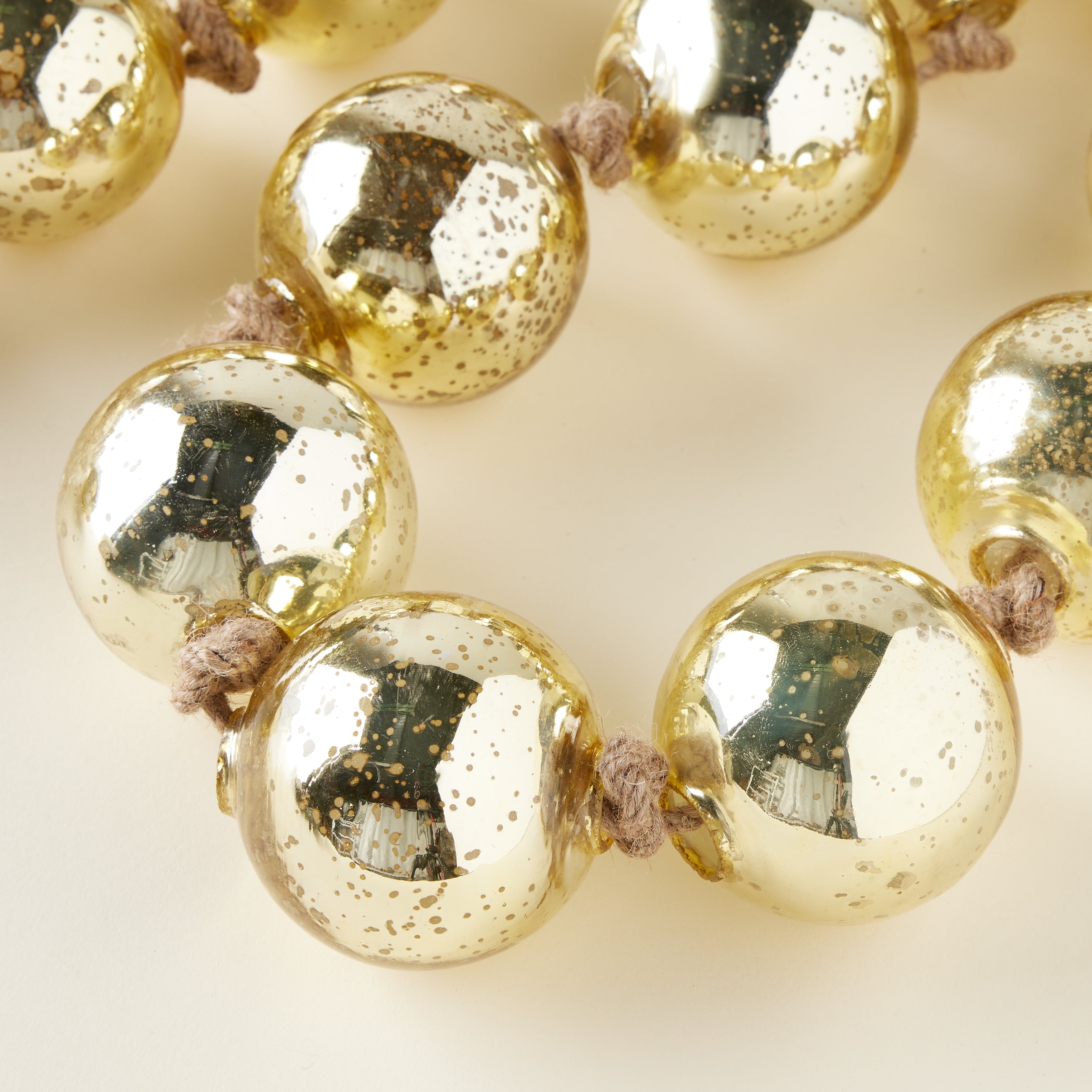 Lend a touch of ethereal opulence to your festive décor with our Recycled Glass Garland. Each hand-blown ornament, crafted from found glass, holds a soft, golden shimmer that catches the light beautifully, all strung together on a length of organic jute. A timeless, heirloom-quality accent, this versatile garland is perfect for draping over a mantle or weaving through your Christmas tree to infuse your space with a warm, luminous glow.