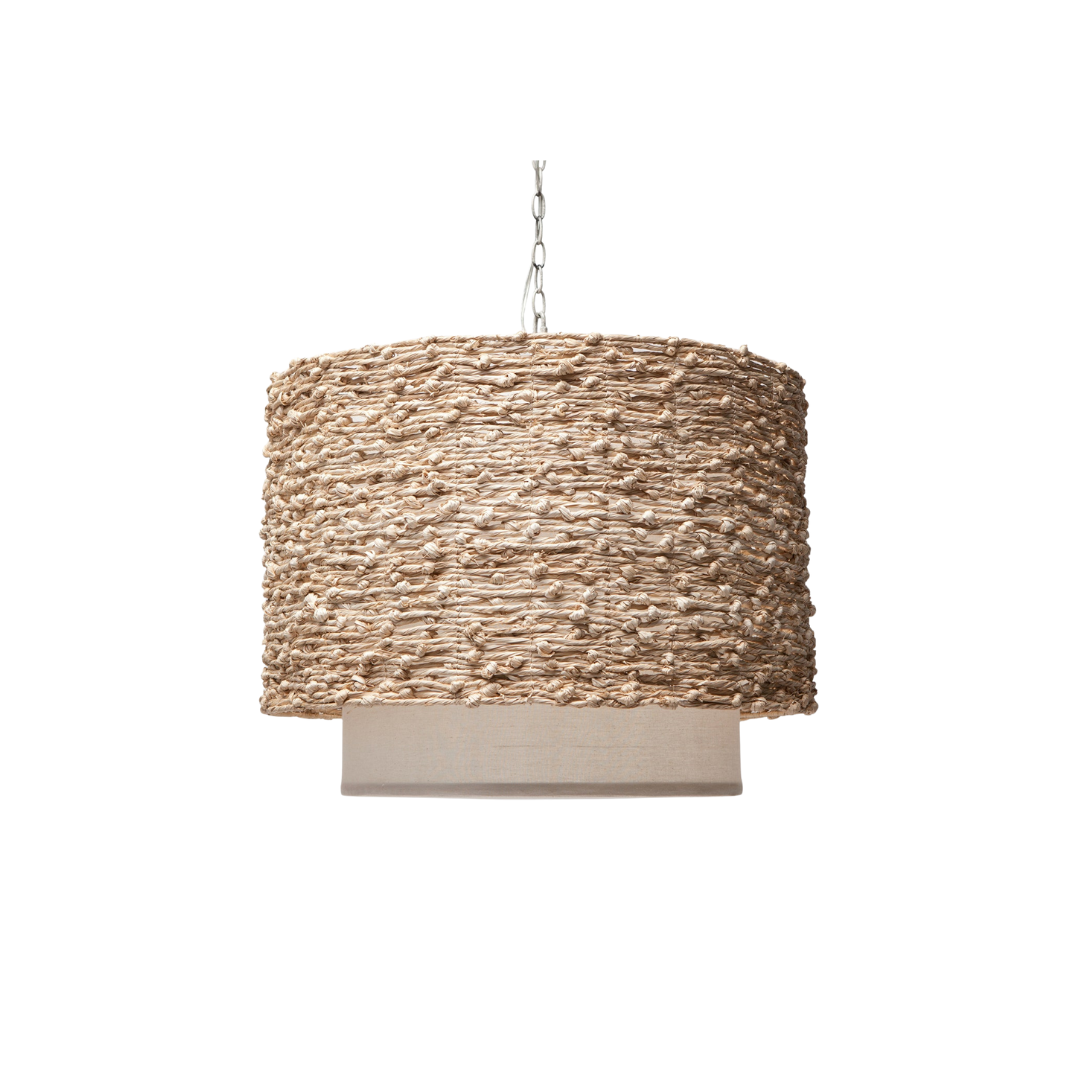 The Reign Chandelier features thick, loosely woven seagrass strands that create a unique drum shape, accented by exposed knotting for a rustic touch. Expertly crafted with attention to detail and superior materials, this fixture features an optional linen drop shade for a softer, more diffused lighting effect.