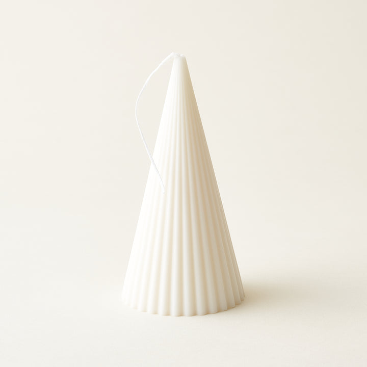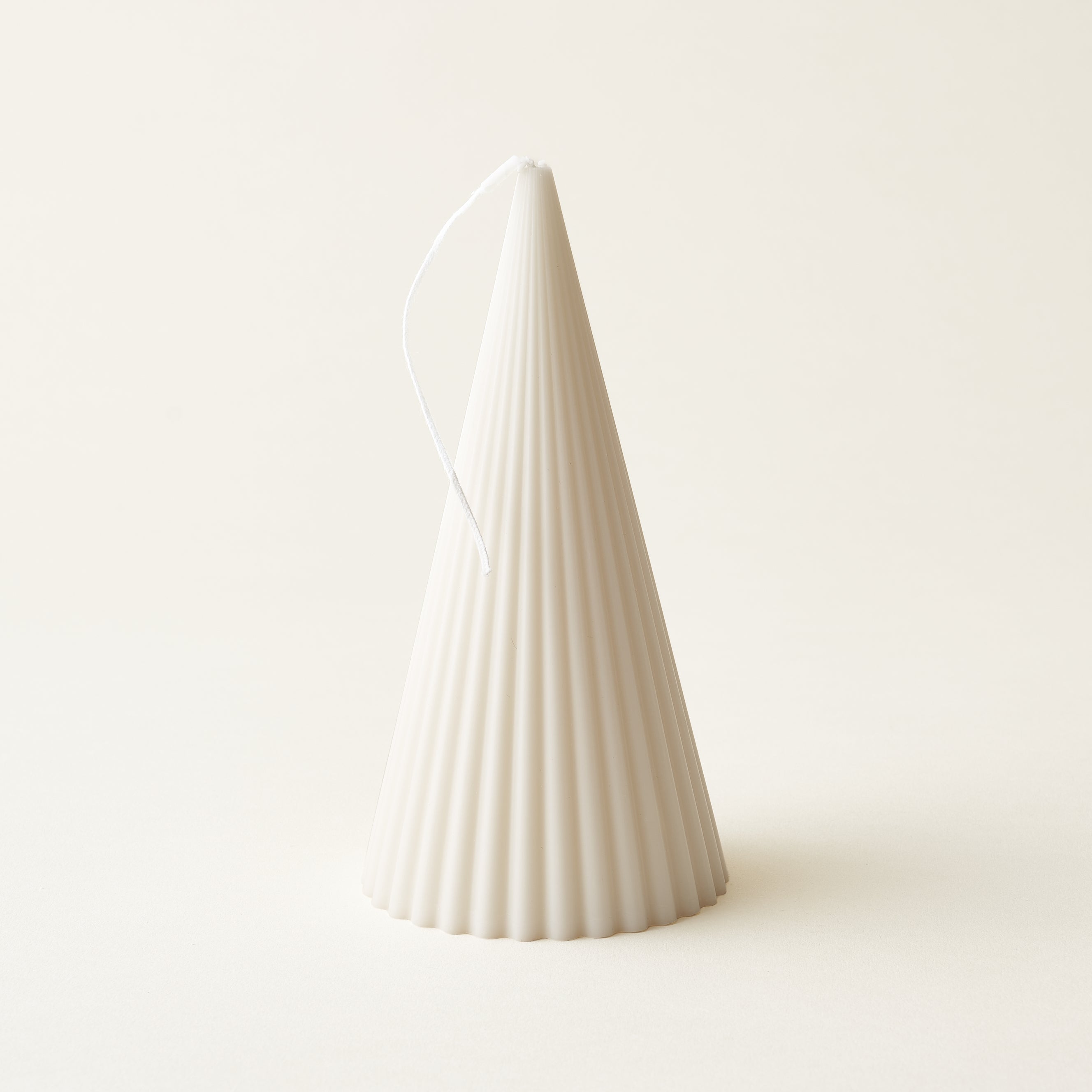 A beautiful way to add sculptural elegance to your holiday decor. Made in the United Kingdom, these Ribbed Christmas Tree Candles are a unique, eco-friendly, and vegan-friendly accent. Hand-poured with soy wax and featuring a cotton wick, these candles are best styled as decor on a heat-resistant, deep tray or dish to prevent wax spillage.