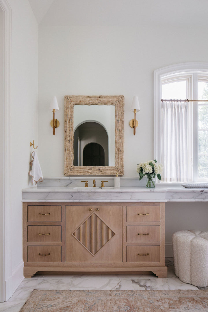 Experience the perfect blend of style and functionality with the Ripley Sconce. With an organic touch of rattan wrapping, the elegant Aged Brass frame is thoughtfully designed to add a touch of warmth to any room. The white linen shade provides a soft, inviting light for a balanced and cozy ambiance.