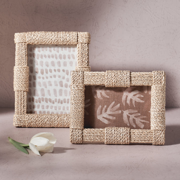 The Abaca Rope Photo Frame is a beautiful way to add timeless charm to your favorite memories. With its unique, organic rope texture, this frame stands out and adds a beautiful, artful touch to any space. Available in two sizes, you can style them together or separately to create a cohesive look.