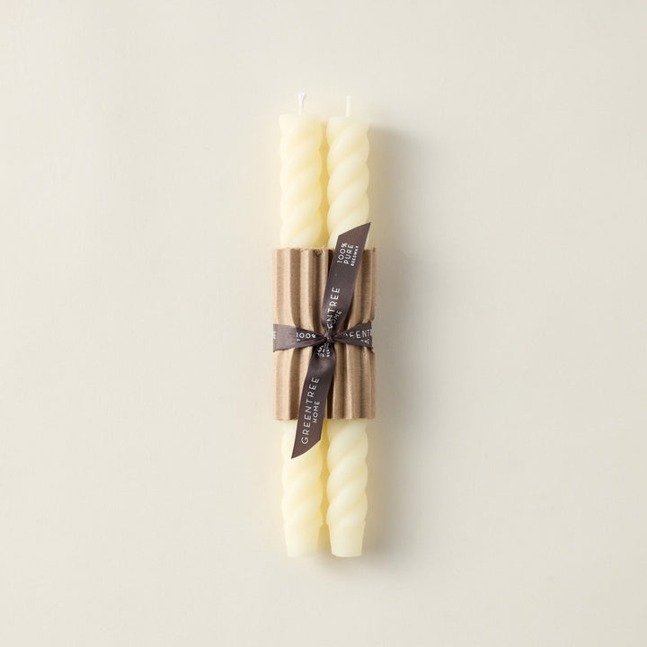 These elegant Rope Taper Candles are a testament to handcrafted quality. Hand-poured in New York State from 100% pure North American beeswax, they offer a clean, bright burn and a natural feel. Their sculptural rope design and graceful style make them a beautiful and thoughtfully made addition to any table setting, bringing a touch of refined ambiance and a sense of ritual to your home.