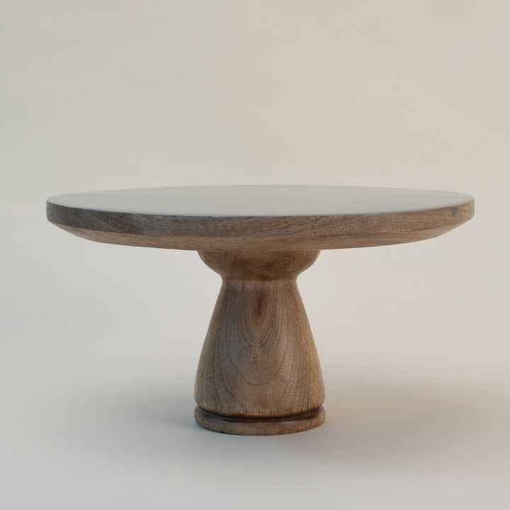 Elevate (literally!) your serve-ware collection with this pretty Grey Enameled Mango Wood Pedestal. The serving surface is a grey enamel.