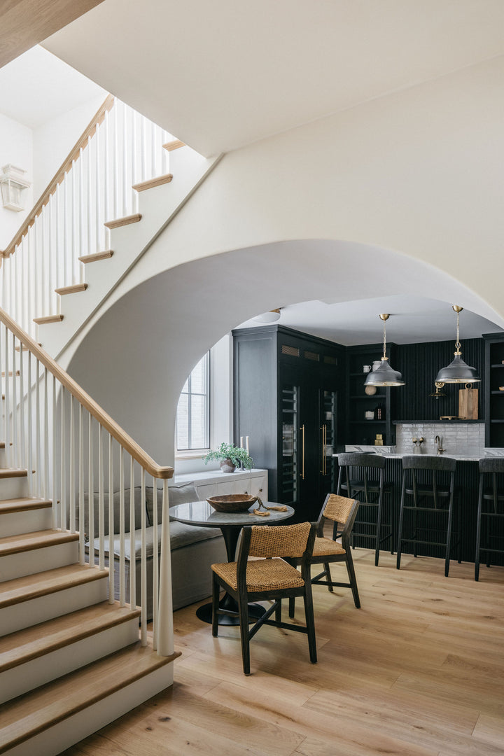 The Rowan Table features a 36-inch round top crafted from unique Crown Bianco Marble, showcasing natural variations that enhance its sophisticated appeal. Its tapered iron base, finished in matte black with a distinctive center band, offers both stability and refined elegance. Designed for versatile use, this table suits entryways, bistros, or intimate dining spaces, combining durable materials with timeless style for a lasting impression.