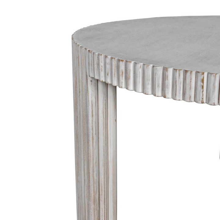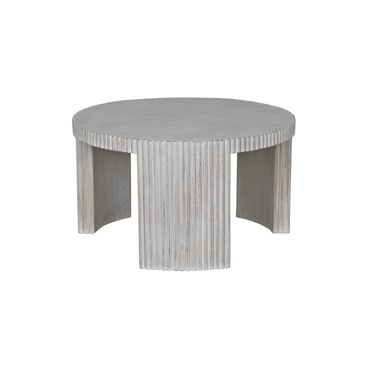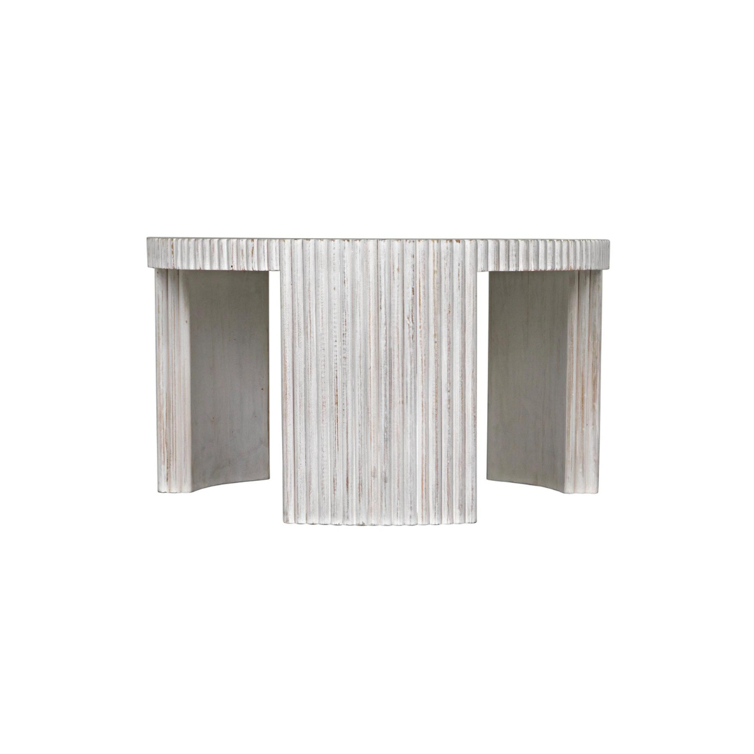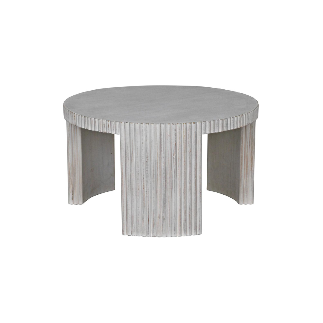 This distinctive white washed round Ruby Coffee Table is the perfect addition to any living space. Its durable wood construction and unique design provide both style and stability. Enhance your home with this modern classic.