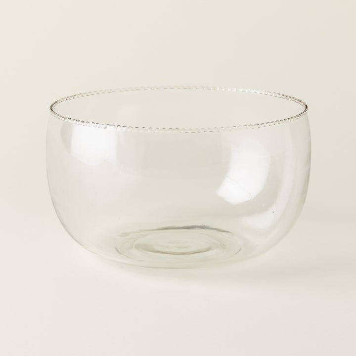 Crafted from high-quality glass, this Ruffle Glass Bowl is both chic and minimal, perfect for any occasion. Its unique texture adds a touch of sophistication to any table setting. Each bowl is ethically crafted in small batches and is dishwasher-safe.