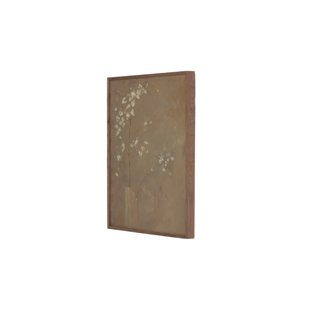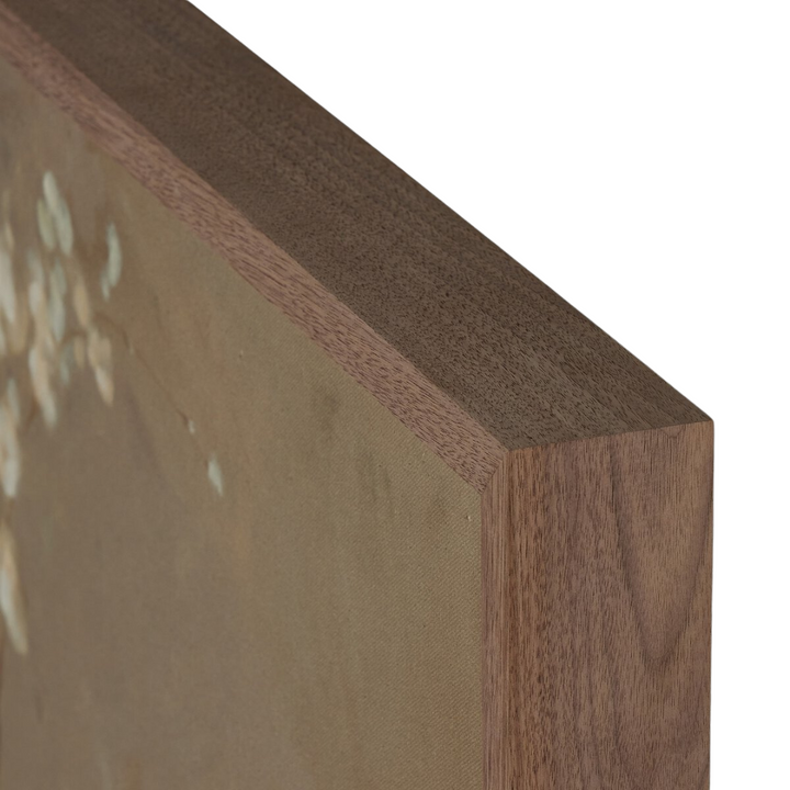 Expertly crafted by Austin-based artist Jess Engle, Sakura is a stunning blend of nature and geometry. Each piece is handcrafted in Austin, Texas, with raw canvas wrapped and mounted in a rustic walnut frame for a unique, one-of-a-kind look. Elevate your space with this beautifully crafted piece of art.