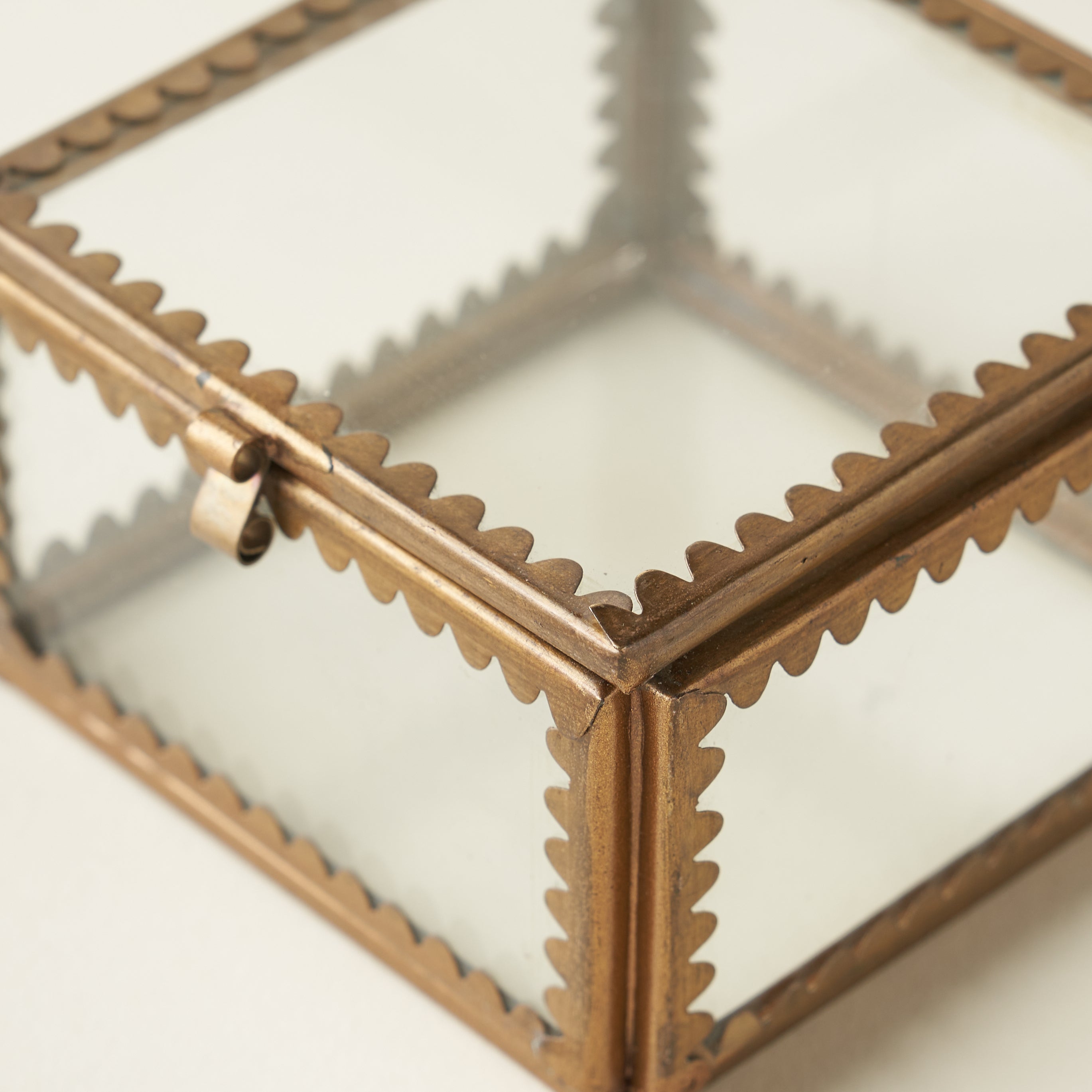 A thoughtfully made piece for showcasing your most cherished items, this Scalloped Brass & Glass Display Box is truly a work of art. The sculptural scalloped edges and genuine brass construction give it a timeless charm and an elegant feel. Perfect for displaying your treasured possessions and heirloom