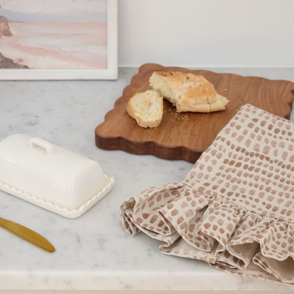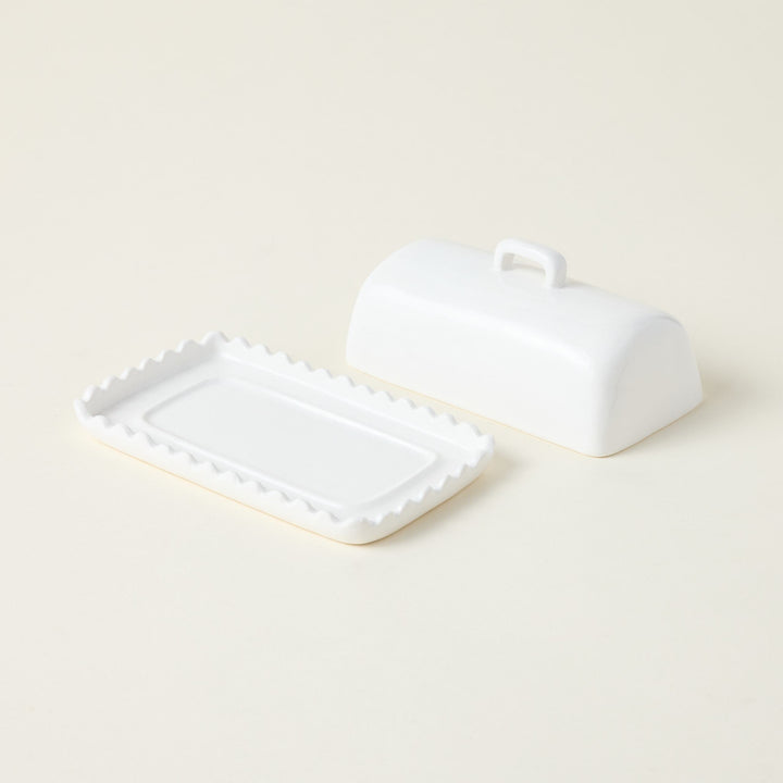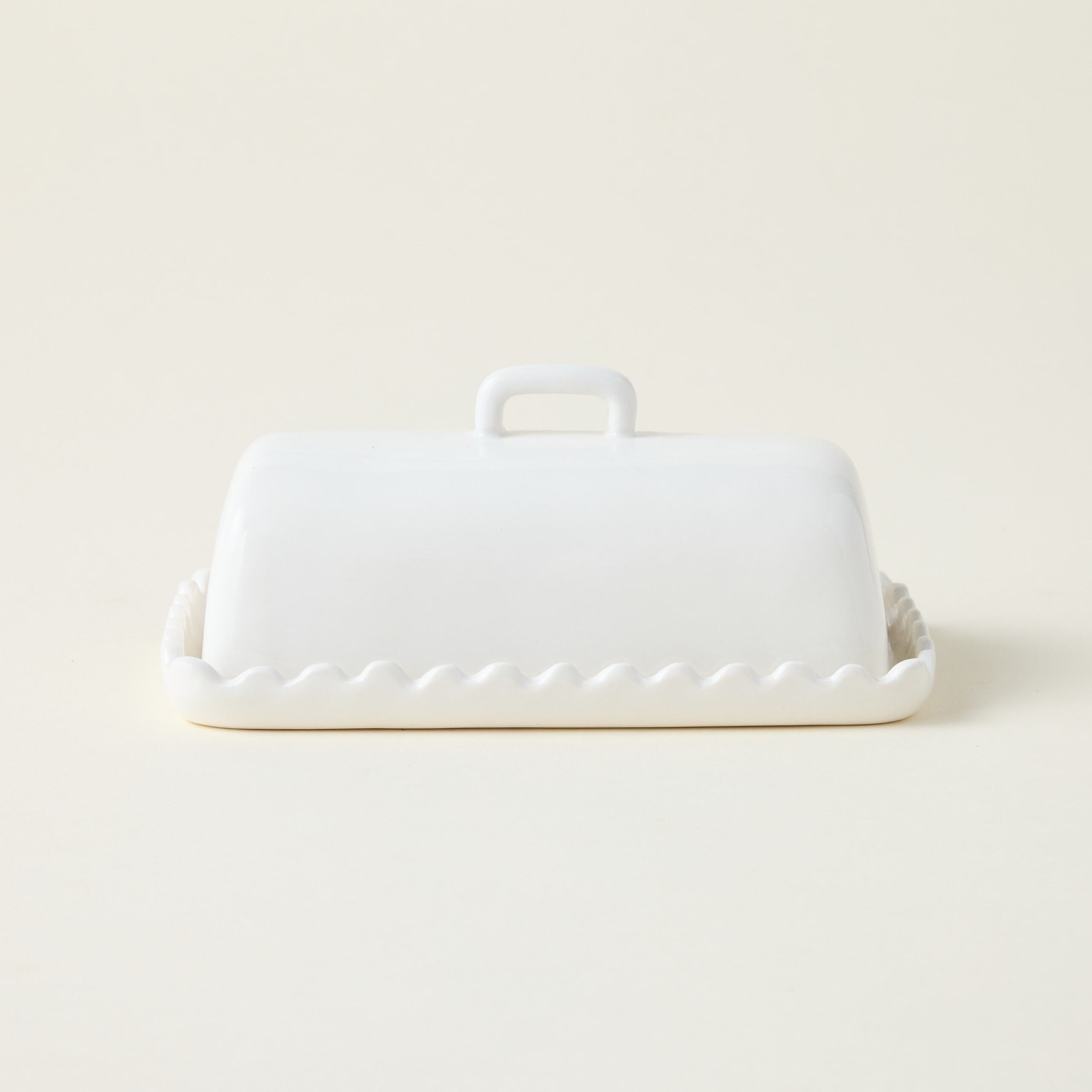Effortlessly elegant and nature-inspired, this Scalloped Butter Dish features a delicate scalloped design and a reactive white glaze finish. The beautiful detailing adds a feminine touch and a classic feel to any table setting. It's a perfect and stylish way to serve butter for your next meal.