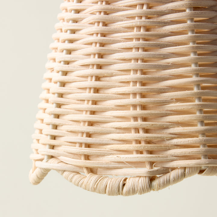 Elevate your lighting with this Scallop Edge Rattan Lamp Shade. Handcrafted with intricate details, this stunning piece features a scallop edge design for a charming touch. Made from high-quality rattan and iron, it effortlessly fits most LED lamps. Experience the warm and inviting glow it brings to your living room, bedroom, or home office.