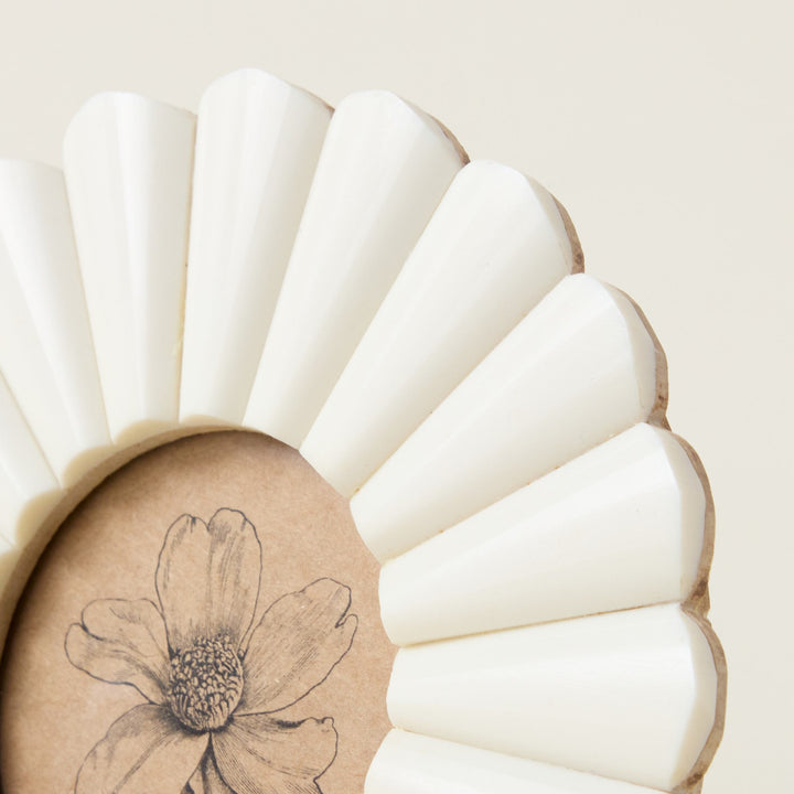 Display your cherished memories with this charming Scalloped Round Frame. Designed to complement any aesthetic, it showcases your favorite printed photos in a unique and thoughtful way. Keep your precious moments safe and on display with this beautifully crafted frame.