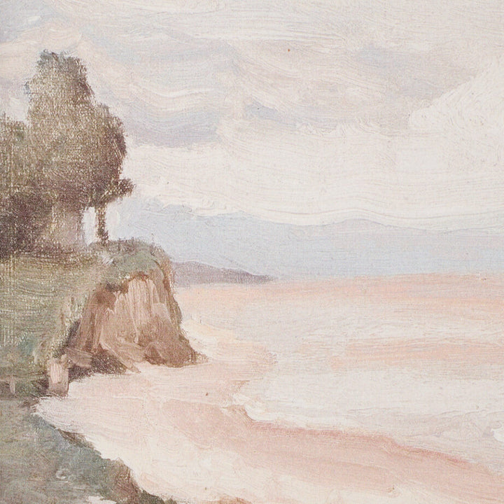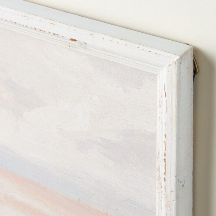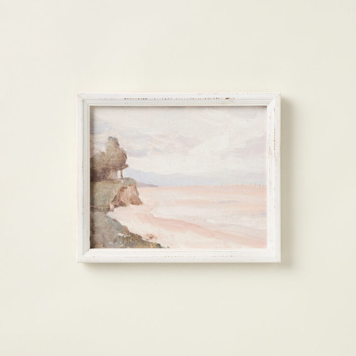 Experience a sense of serenity with this Seaside Landscape. With its soft hues and wood frame, this piece will add a sense of calm into your space. Perfect for leaning in a bookshelf or styling within a gallery!