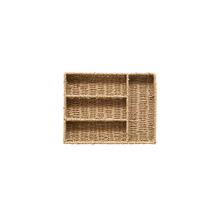 Hand-Woven Seagrass Tray with 4 Sections, Natural