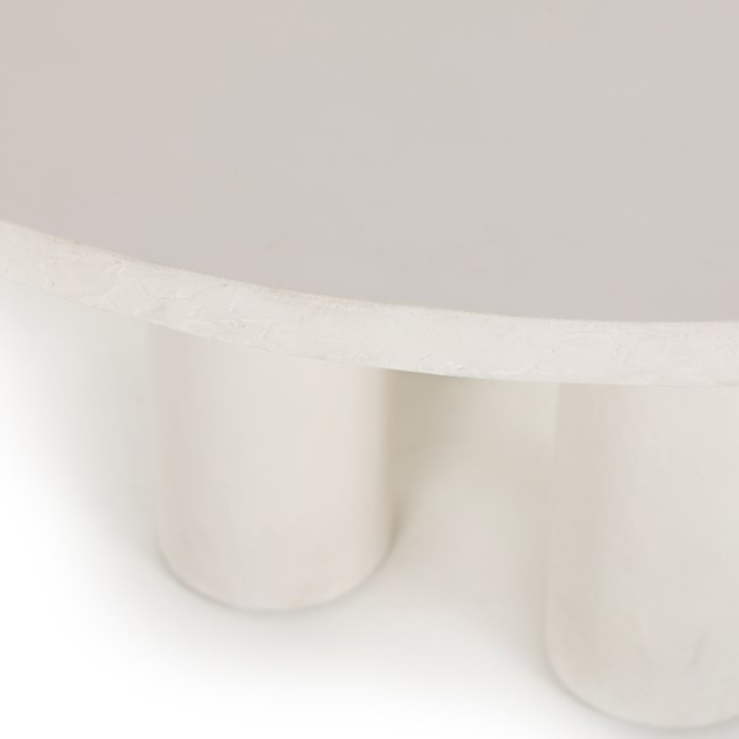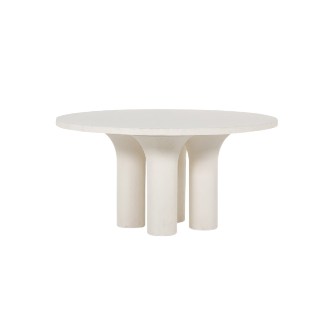 Made from plaster-molded concrete, a cylindrical pillar-style base tapers slightly to support a smooth white-finished tabletop for beautifully complementary texture.