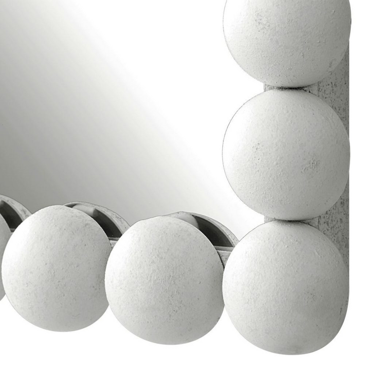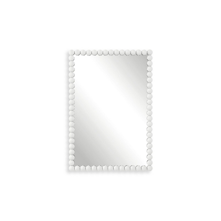 The Serena Vanity Mirror showcases an iron frame with a refined beaded profile, finished in elegant matte white. Designed for versatility, it can be mounted horizontally or vertically, making it a sophisticated addition to any space.