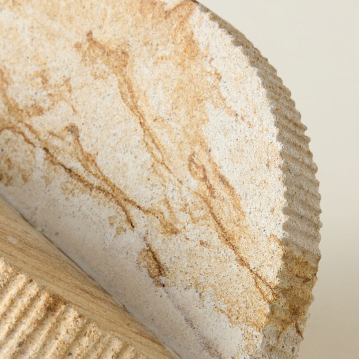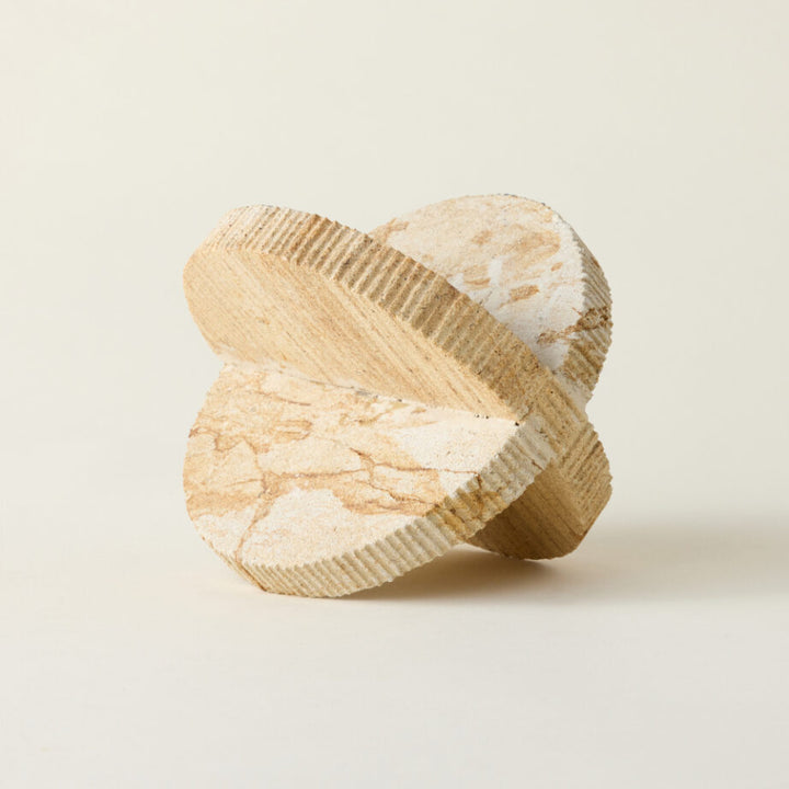 Intricately carved from Palimanan Stone, the Sheena Sculpture boasts a natural finish, adding visual interest to any space. Each piece features unique characteristics, making it a one-of-a-kind decorative object to display on bookshelves, tables or a book stack.