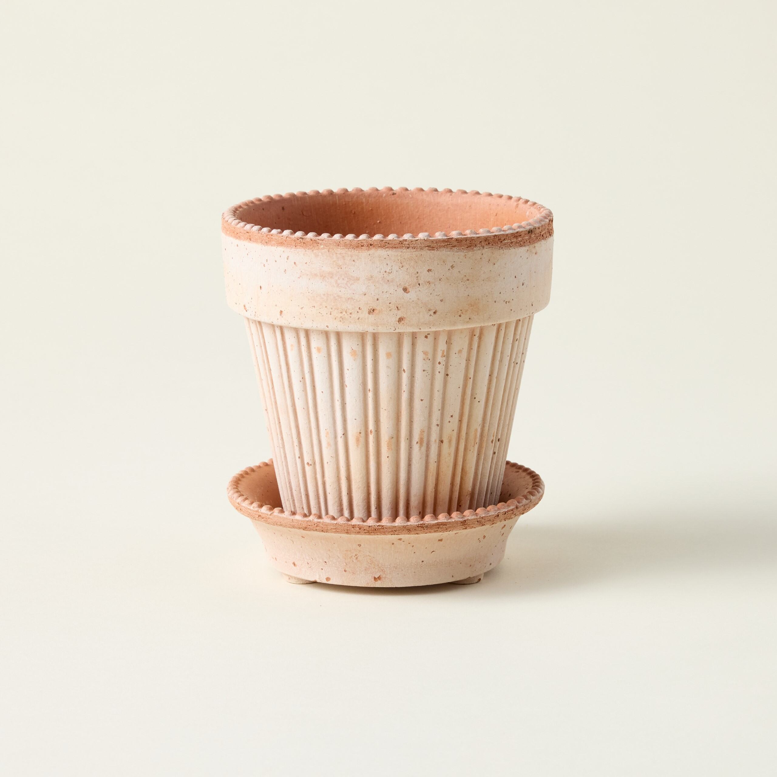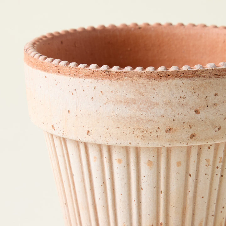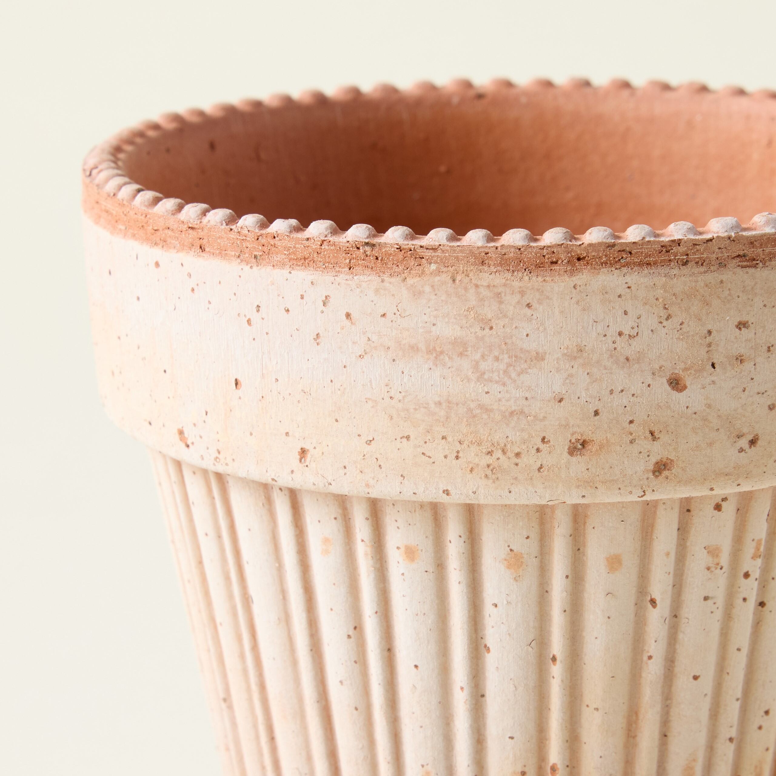 Experience the charming elegance of 19th century French homes and gardens with the Simona Rosa Set. Handcrafted by Tuscan potters, this romantic pot features a raw finish and is perfect for adding a touch of Parisian style to your home. Its timeless design is a beautiful addition to any space.
