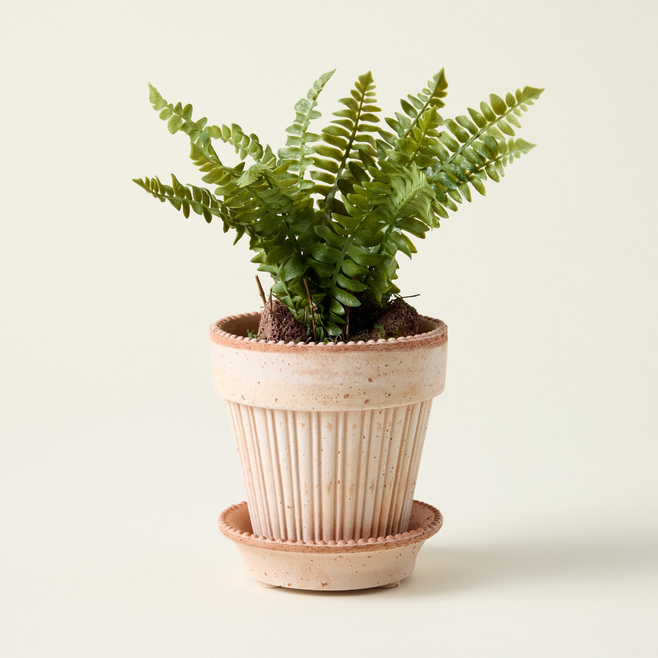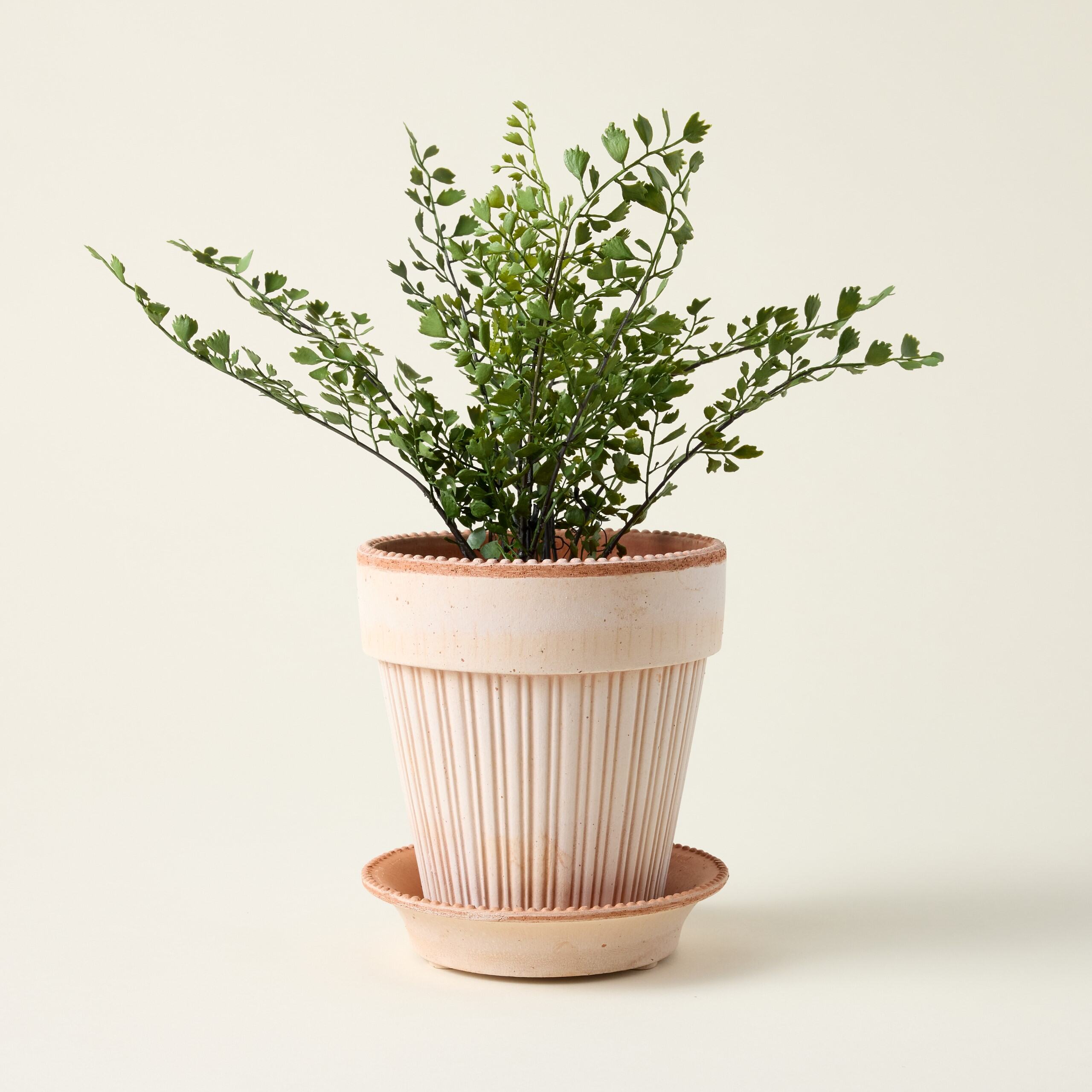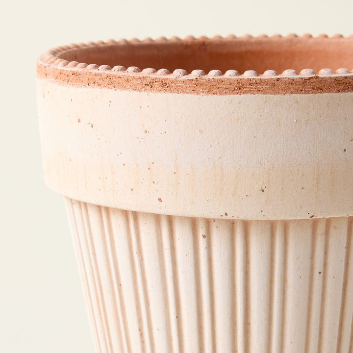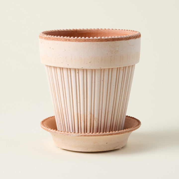 Experience the charming elegance of 19th century French homes and gardens with the Simona Rosa Set. Handcrafted by Tuscan potters, this romantic pot features a raw finish and is perfect for adding a touch of Parisian style to your home. Its timeless design is a beautiful addition to any space.
