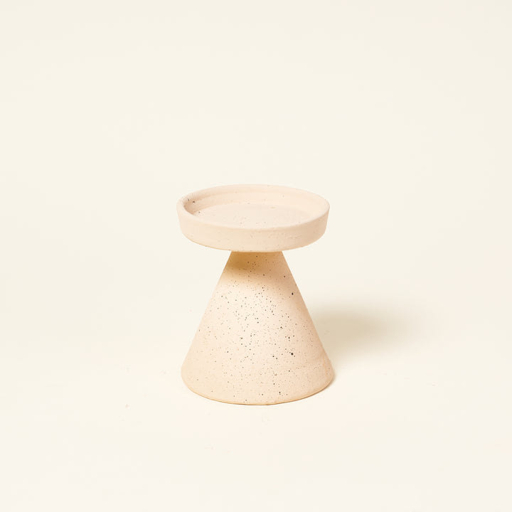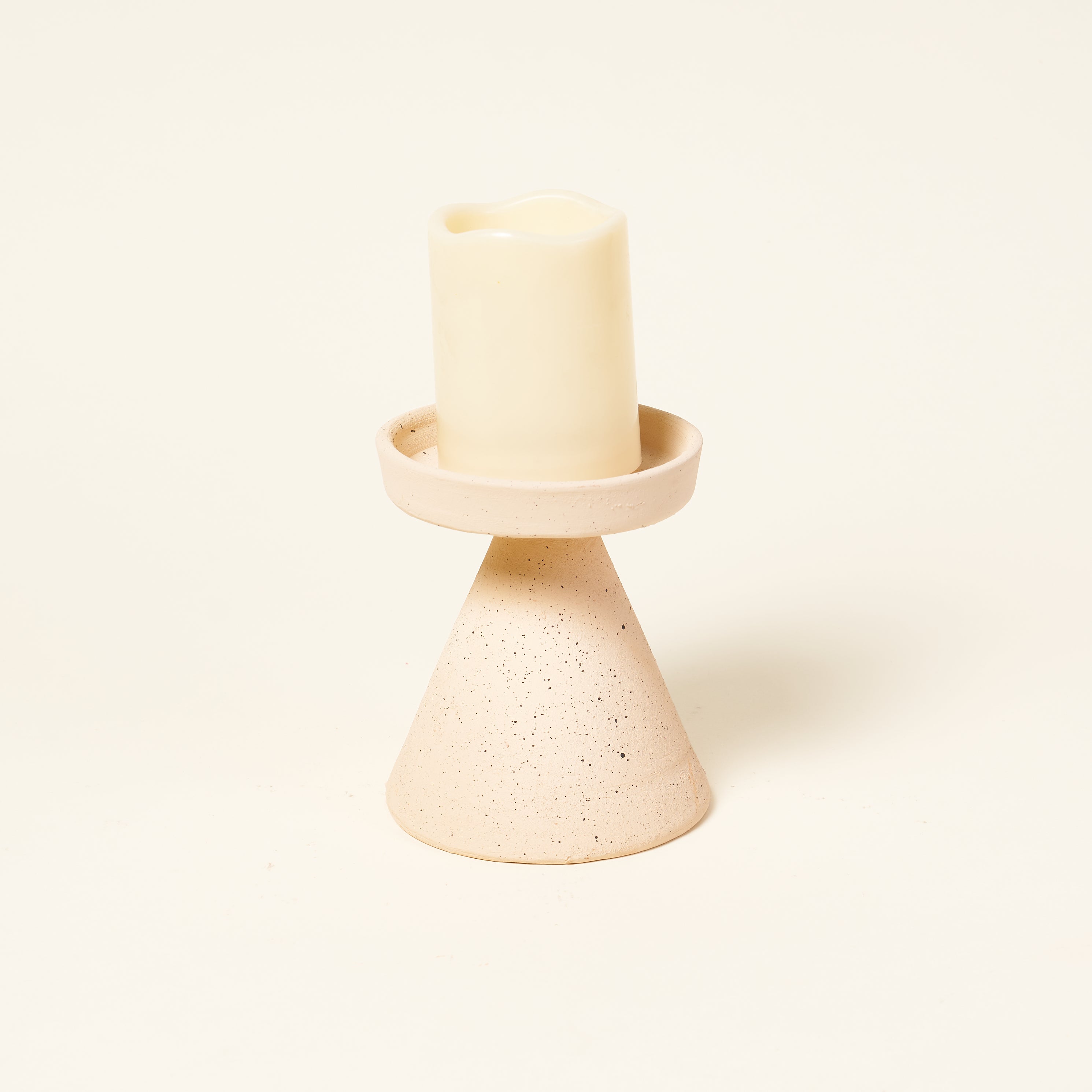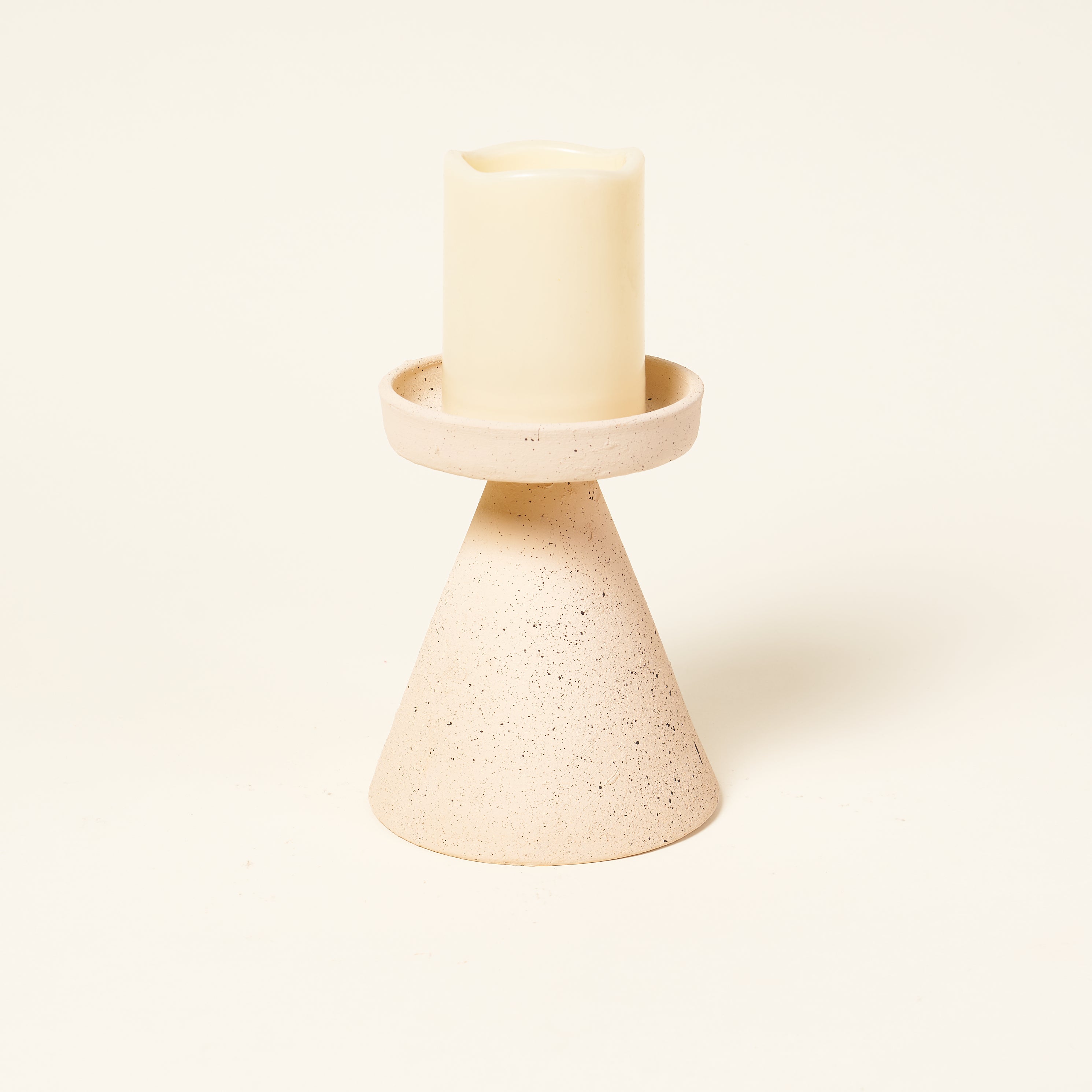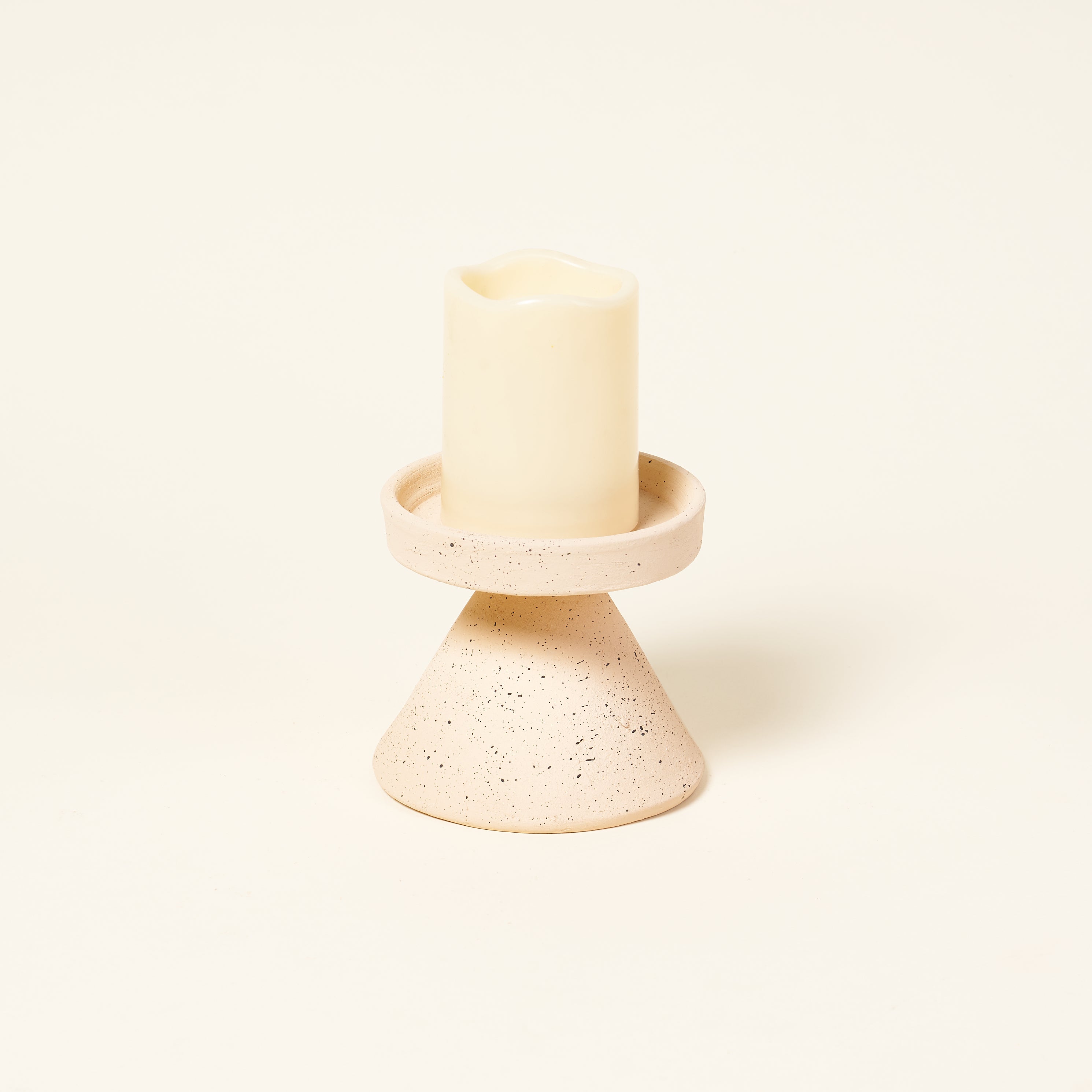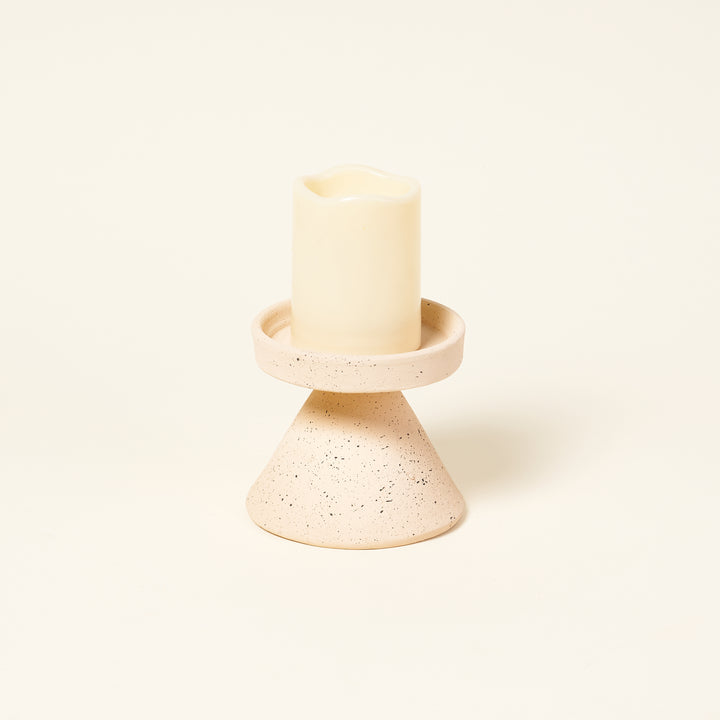 Clay pillar candle holders with a speckled finish add a perfect touch of neutral colors to your decor. Choose between 3 sizes.