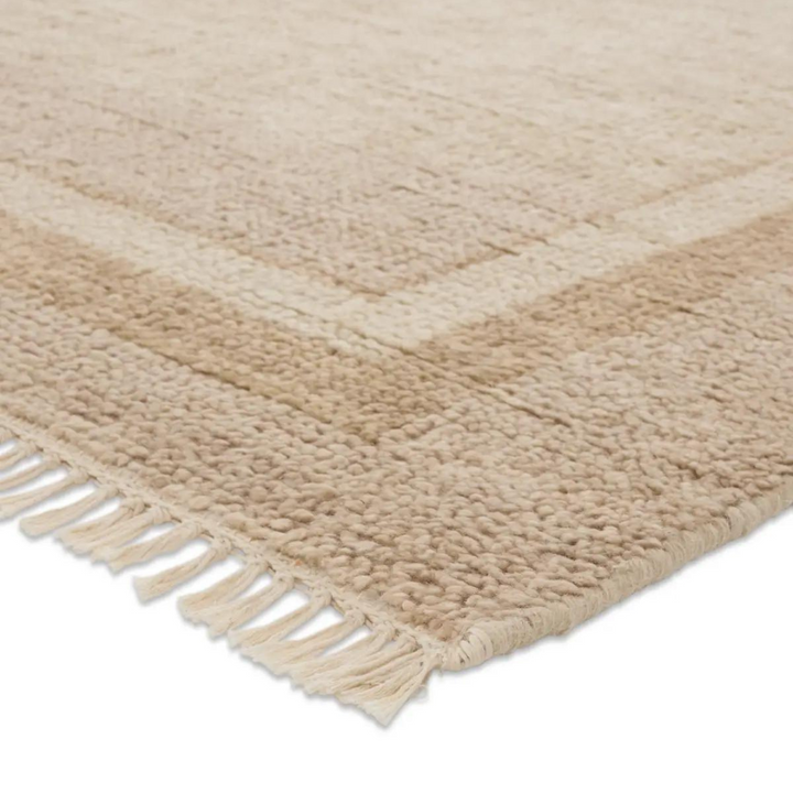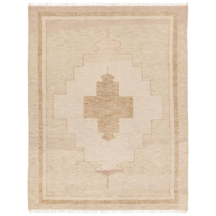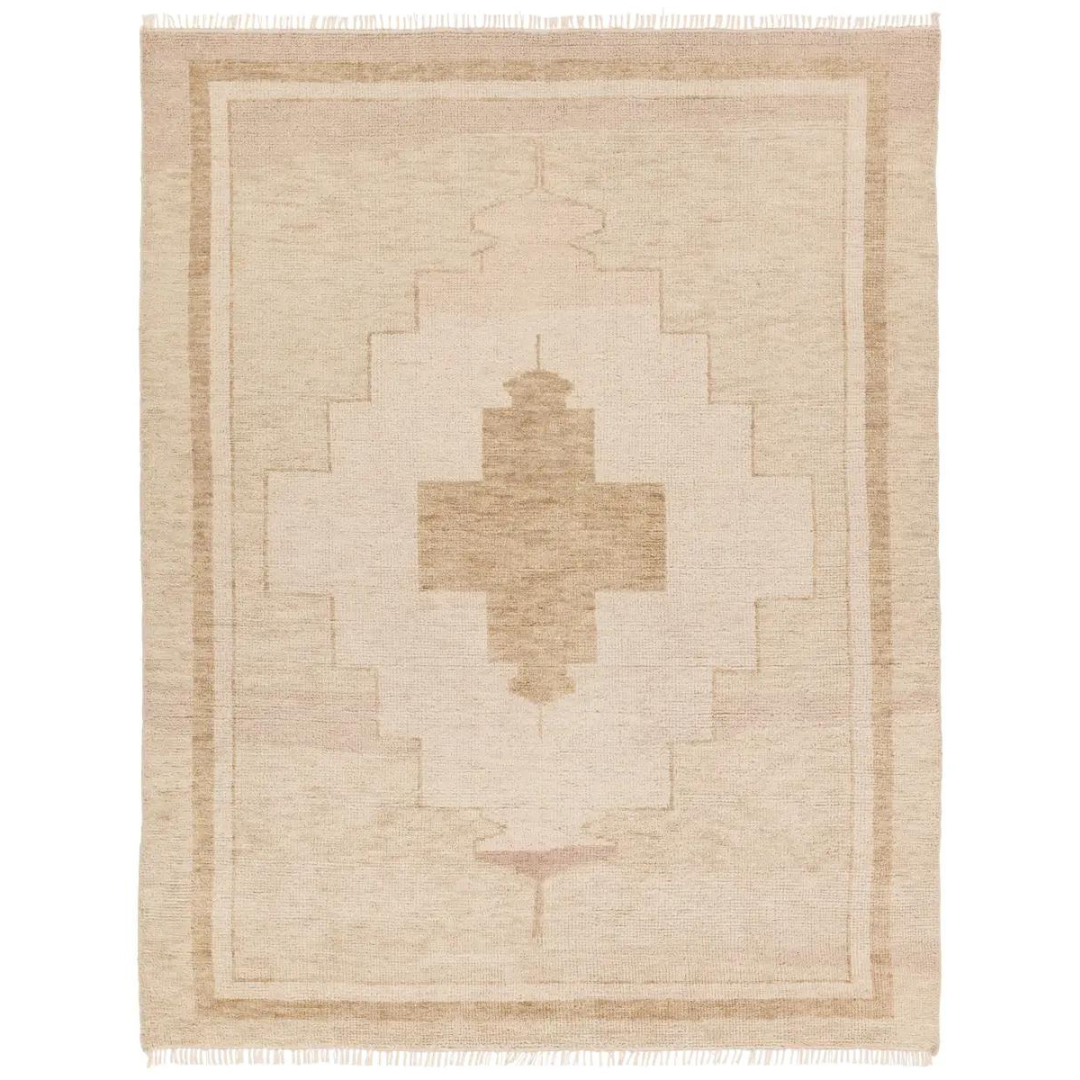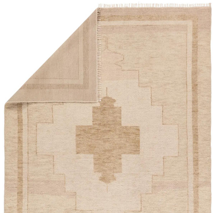 Vintage-inspired with a tonal, modern twist, the Stevie Rug grounds a space with inviting and comfortable appeal, while also lending the perfect amount of interest to a room. Featuring a center-medallion with a border and fringe to match, this beige and cream hand-knotted rug complements a variety of aesthetics. Naturally stain-resistant, the 100% wool pile is soft underfoot and easy to clean while maintaining effortless sophistication.