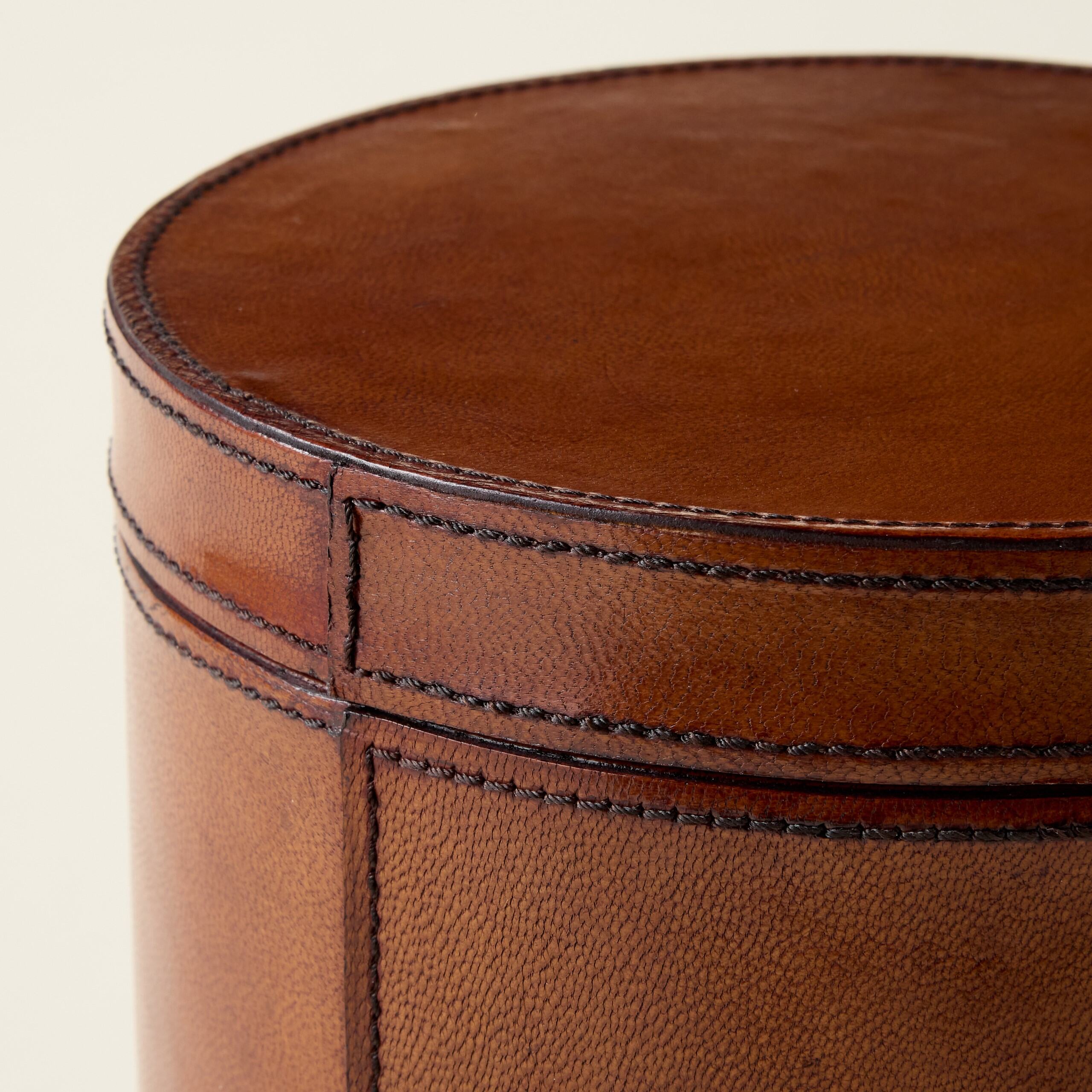 A beautiful way to add depth to any display and keep your items organized. This Stitched Leather Box is expertly crafted from high-quality leather and features elegant stitching and a soft flocked interior. Available in two sizes, these boxes are perfect for storing jewelry, trinkets, and other small treasures in a beautiful and sophisticated way.