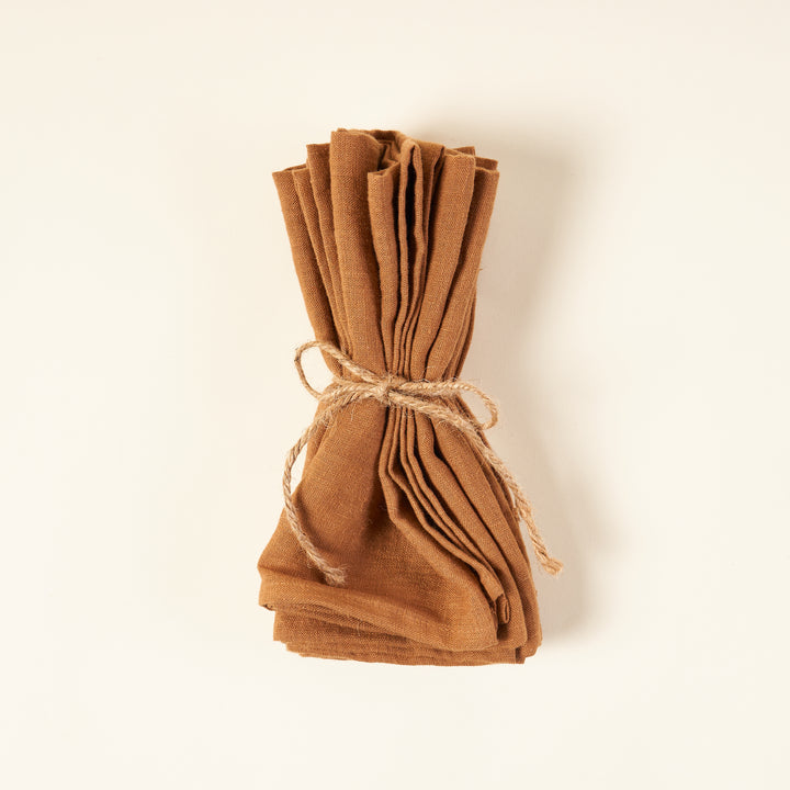 Amazingly soft and pure linen napkins in a warm cinnamon color. Made from 100% European flax, stone washed for maximum softness, and OEKO-TEX certified product (absent of harmful chemicals). Set of 4