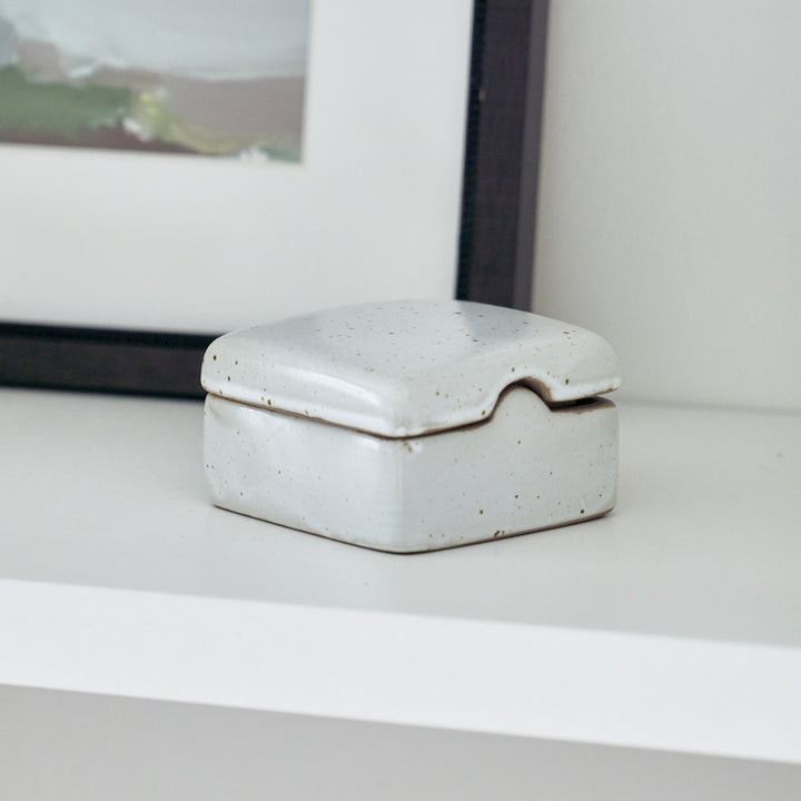 This Stoneware Box is crafted with a reactive glaze, a timeless material that gives each piece a unique finish. The lid creates an airtight seal, making it the ideal storage solution. Perfect for the kitchen or home office.