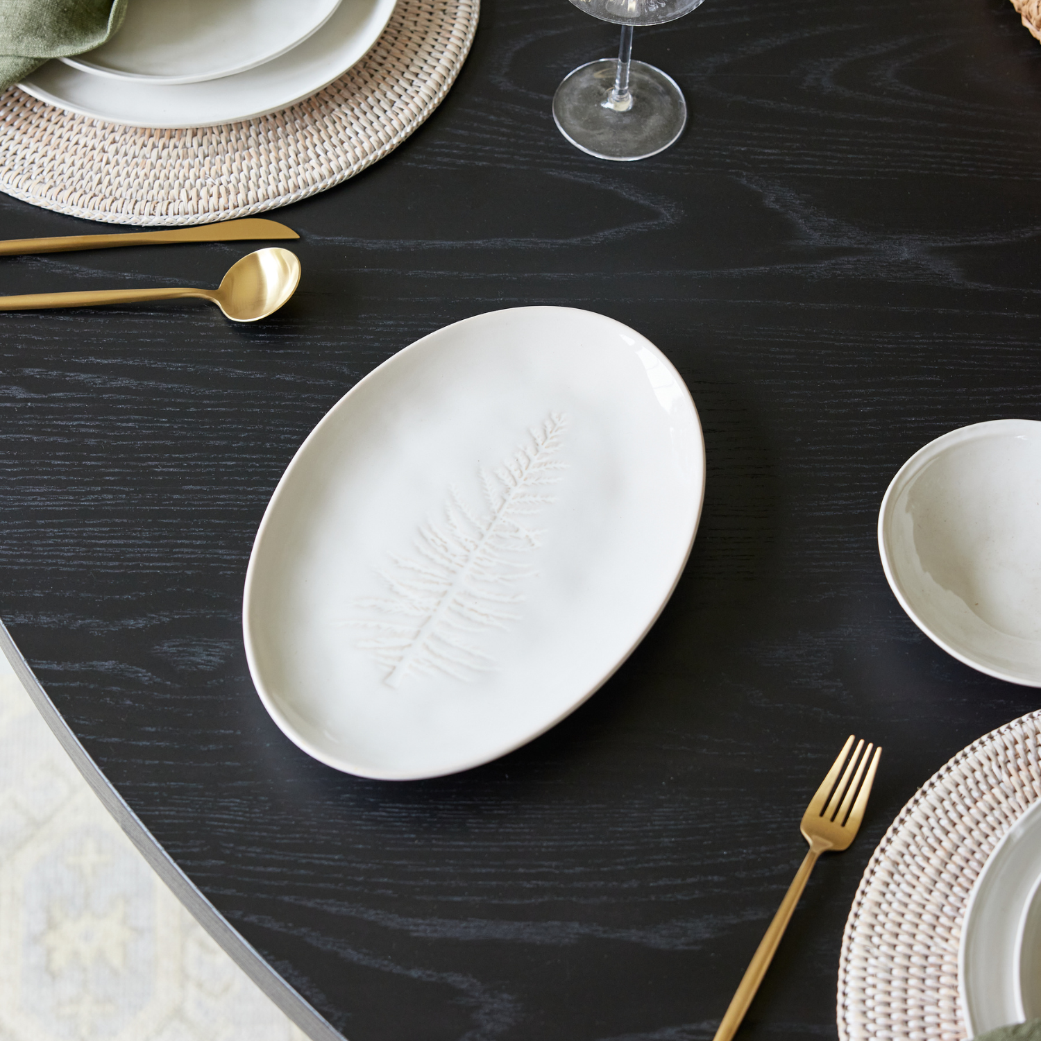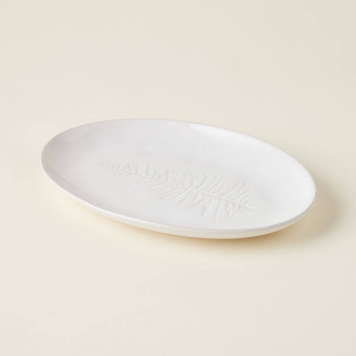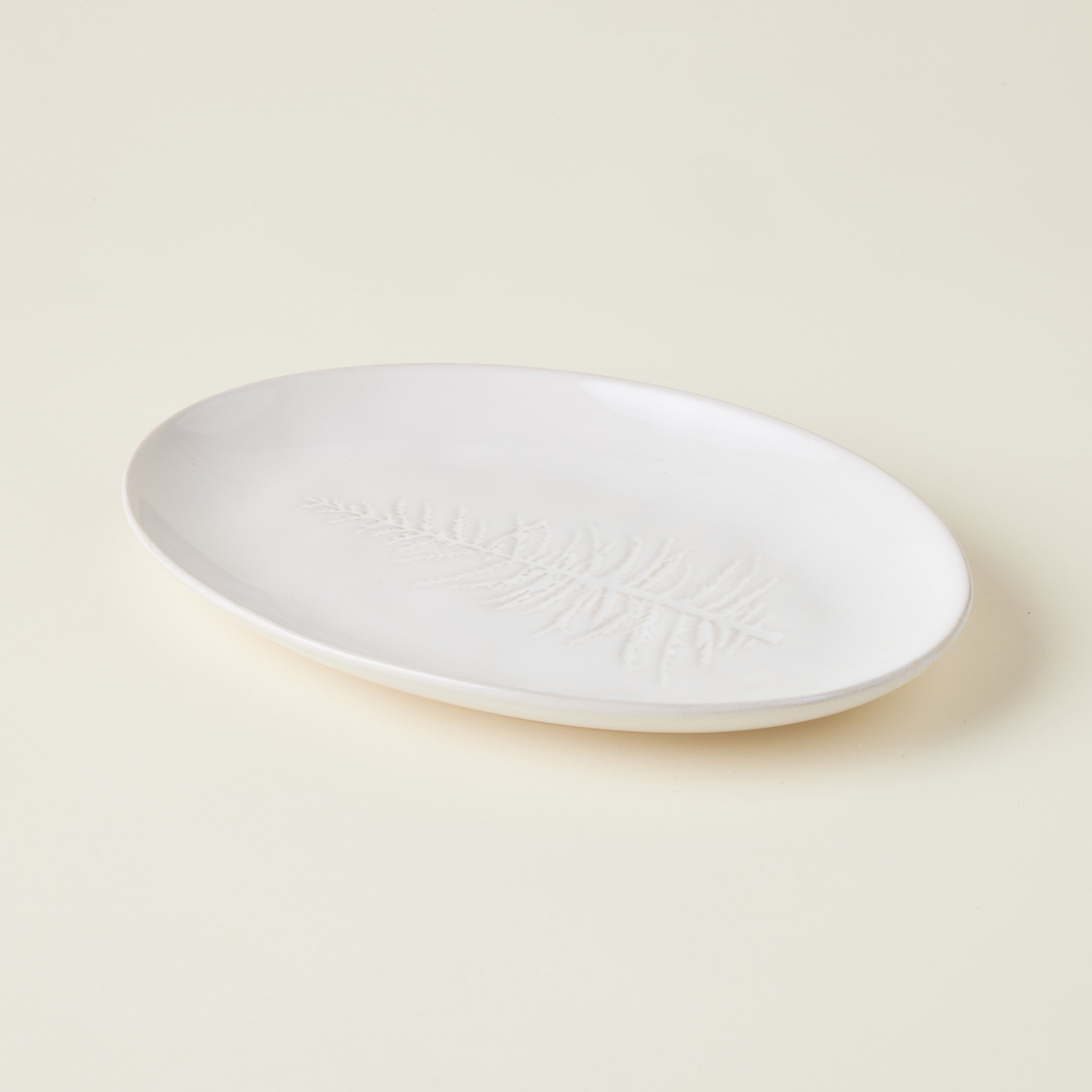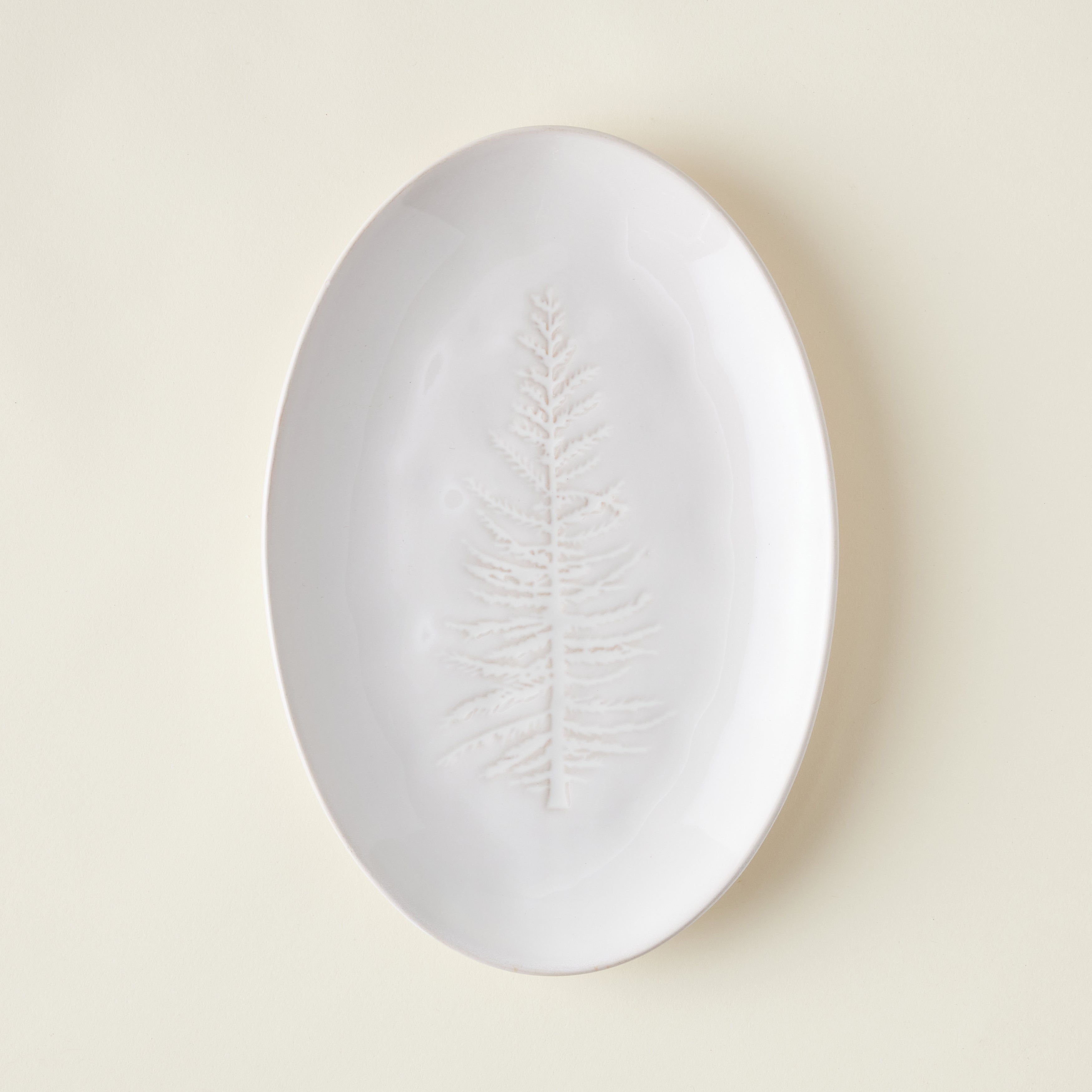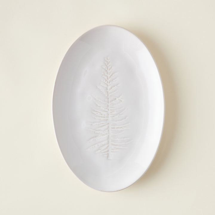 This sophisticated Stoneware Tree Platter is ideal for serving and displaying food in style. Crafted from durable white stoneware, the platter features an oval shape and a debossed tree design. Perfect for entertaining or using as a centerpiece, this platter is an elegant addition to your table.
