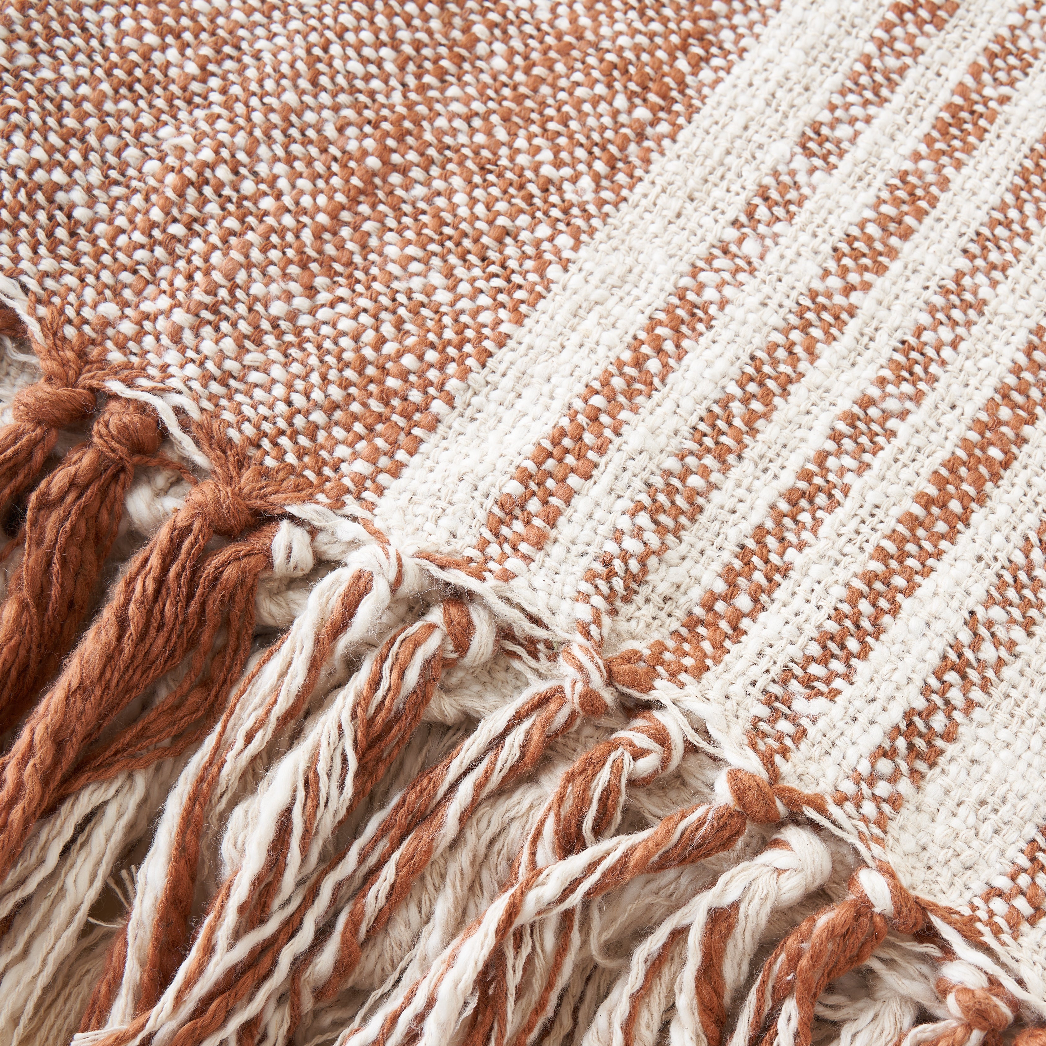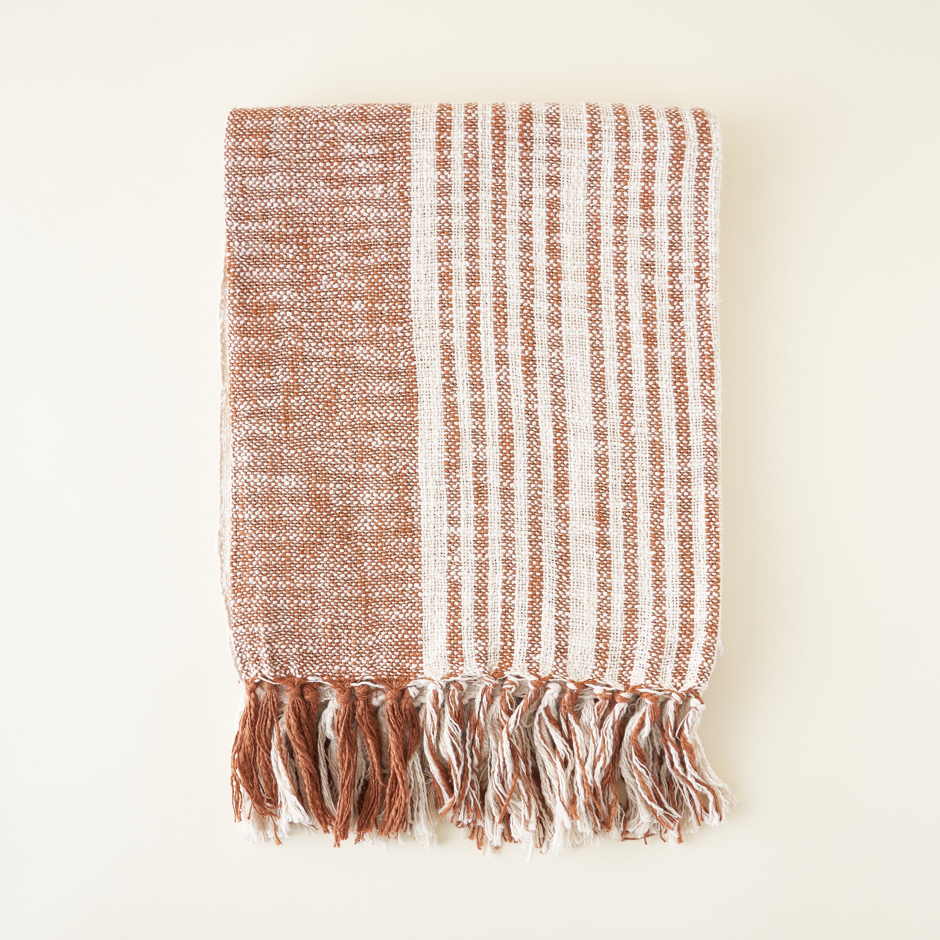 Cozy up with the Tammi Throw! This 60"x50" woven cotton slub throw is crafted with brown and cream stripes and finished with fringe for a timeless aesthetic. Soft yet durable, this throw is perfect for any occasion.