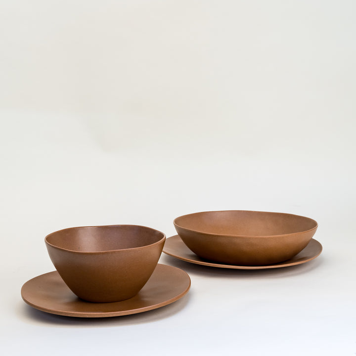 The Terra melamine dinnerware collection features a matte finish in a terracotta color. Made with eco-friendlier Planta material (majority plant-based materials using renewable resources) as well as bamboo powder and melamine. Being completely durable and shatterproof makes them ideal for both indoor and outdoor entertaining. BPA-free. Collection includes a dinner plate, salad plate, low bowl, and bowl (each sold separately).