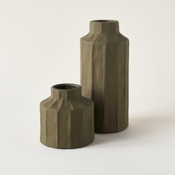 Show off your favorite bouquets with this hand-glazed ceramic bud vase. Its textured, matte green glaze and vertical ribbed texture add style to your space. Ideal for both real and faux botanicals, its stoneware construction and rustic aesthetic creates a warm and inviting atmosphere.