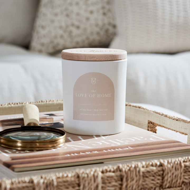 Indulge in the captivating essence of our new Love of Home Candle. This inviting aroma is meticulously crafted to infuse your space with warmth and hospitality. It features a harmonious blend of lively bergamot for a touch of citrusy freshness, while eucalyptus adds invigorating clarity. Soft jasmine weaves through, lending a delicate floral elegance, and the infusion of thyme, crushed basil, and fennel provides layers of herbal sophistication. Let the Love of Home Candle transform your surroundings, embodying Kate's favorite scent and passion for creating an inviting sanctuary.