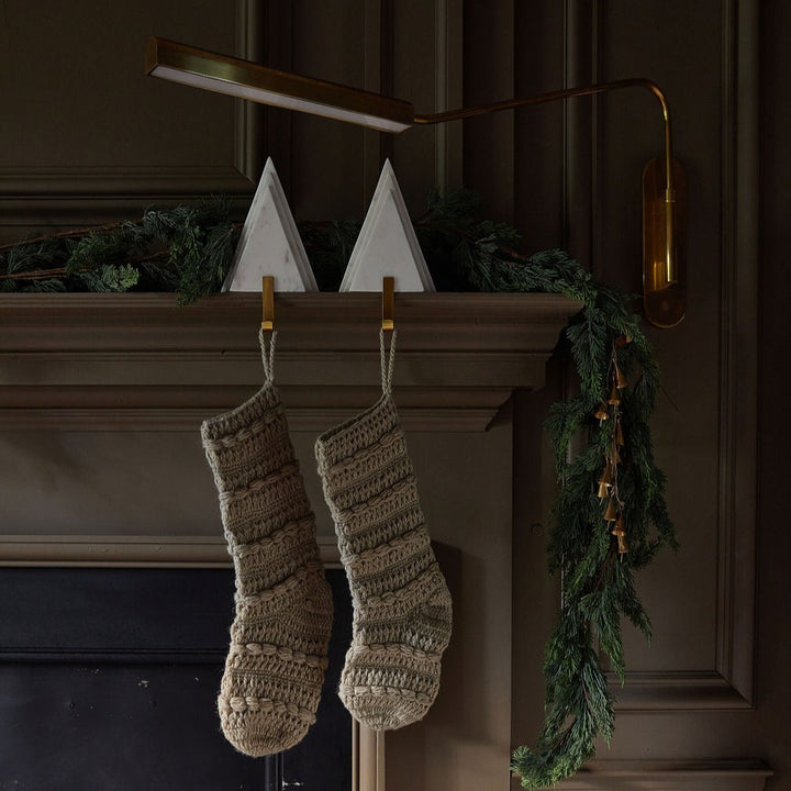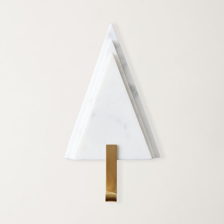 A beautiful way to create a festive atmosphere in your home. This Tree Stocking Holder, with its stylish white marble design and metal gold hook, is the perfect way to hang your stockings for the holidays. Crafted in India, this sturdy piece is sure to provide a classic holiday look and feel on any mantelpiece.