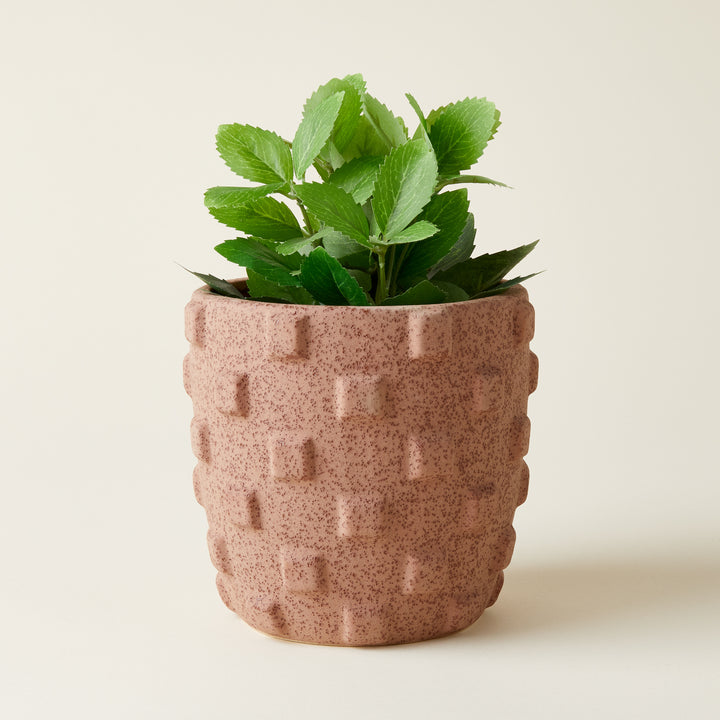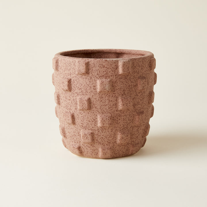 Introducing the Tulley Pot! This unique checkerboard design features a warm terracotta tone and bas-relief texture, making it a versatile piece for your home. Use it as a vase for seasonal arrangements or a pot for your plants. Layer in dimension and style with the Tulley Pot.
