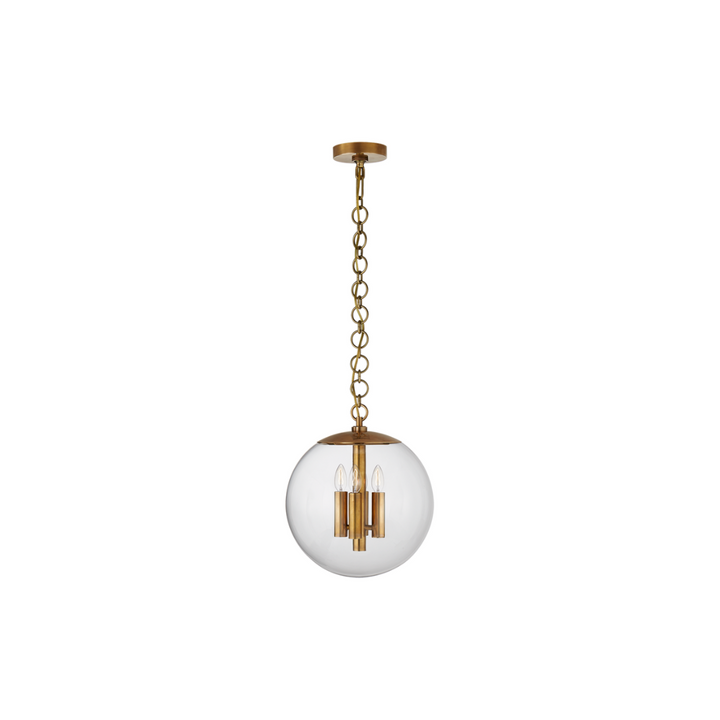 The Turenne Globe Pendant by AERIN seamlessly blends classic design with modern elegance. Featuring a clear glass globe that fully reveals the interior candelabra or bulb, it offers a striking visual appeal whether used alone or in pairs. Ideal for high ceilings and kitchens, this pendant adds refined charm and sophisticated illumination to any space.