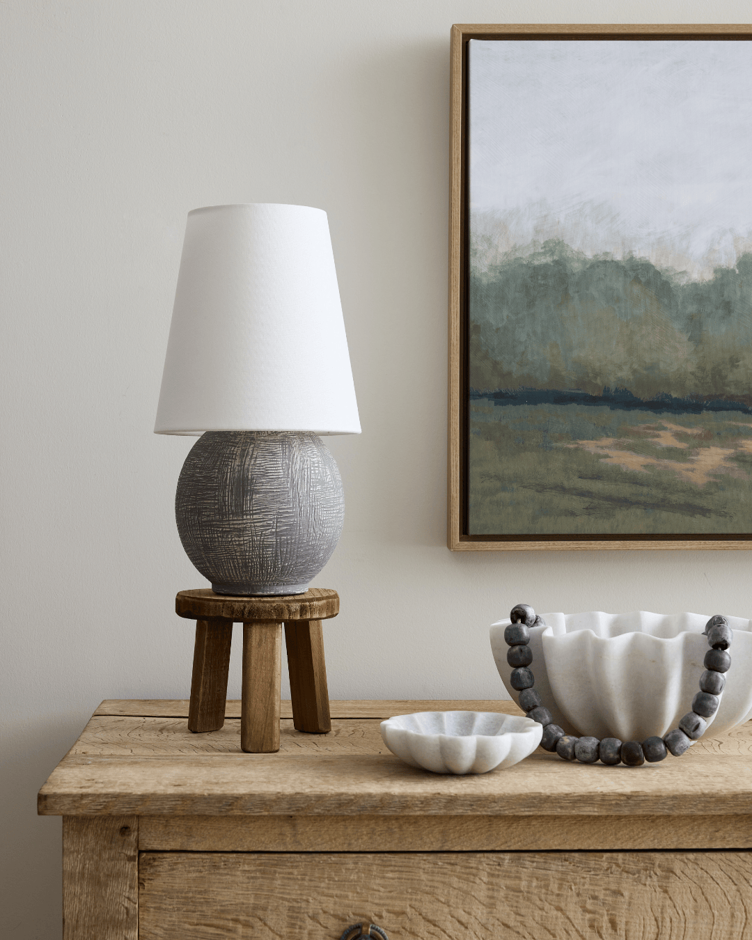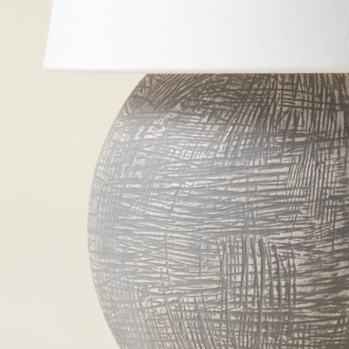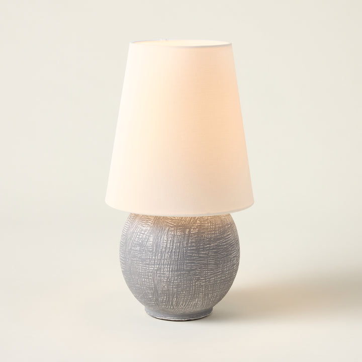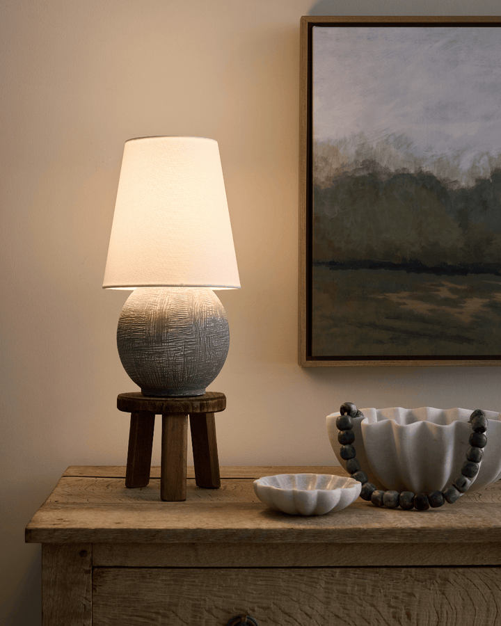 The Ulsterville Table Lamp is a sculptural piece that combines functionality with an artful design. Its spherical ceramic base features an artifact-like textured finish, creating a distinctive centerpiece that feels like a treasured find. Despite its compact size, this interior light offers incredibly versatile ambient lighting thanks to its portable, dimmable LED technology. It's a thoughtfully made and efficient choice for adding a refined glow to a bookshelf, a quiet corner, or a cozy evening in a living room.