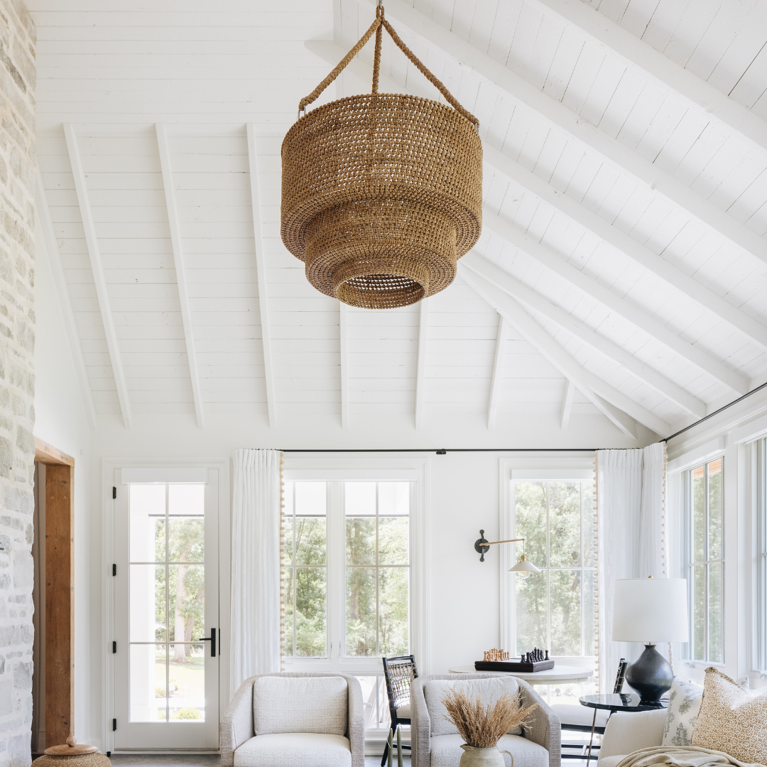 The Veranda Woven Pendant is handcrafted with natural rattan core that is expertly hand-wrapped with lampakanai rope for a customizable, artisanal look. This pendant is finished with a nickel-plated chain and canopy hanging kit for a polished, sophisticated display. Professional installation recommended.