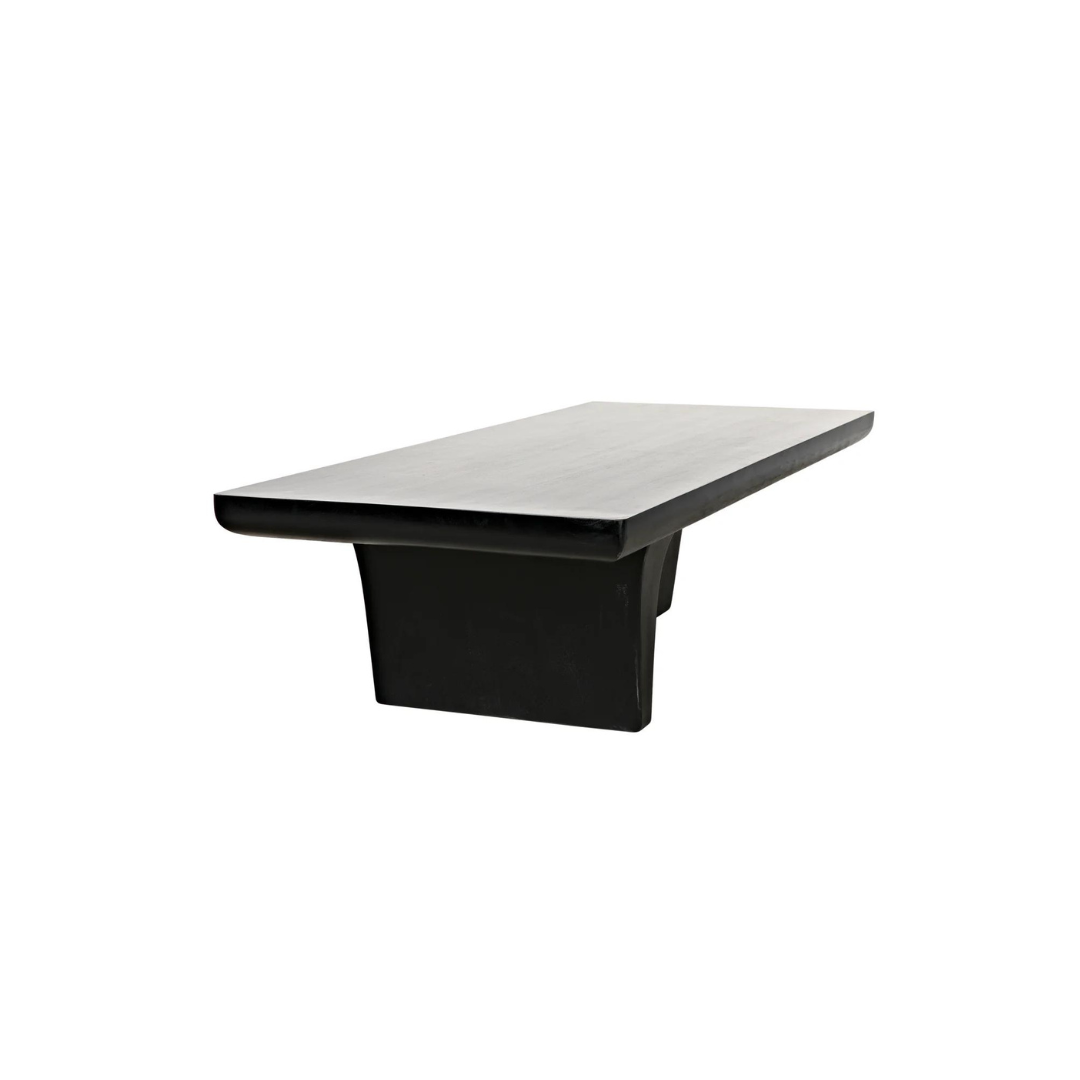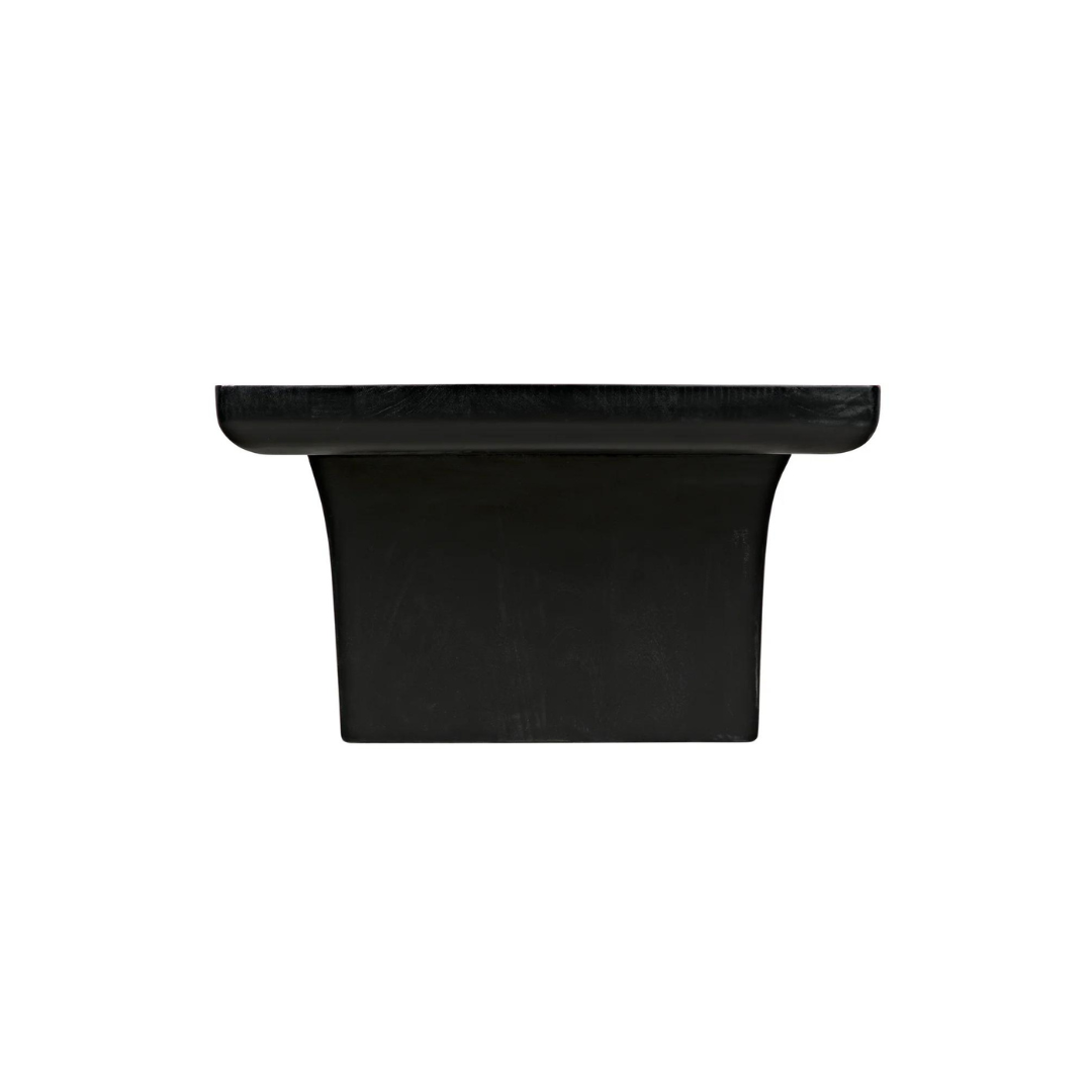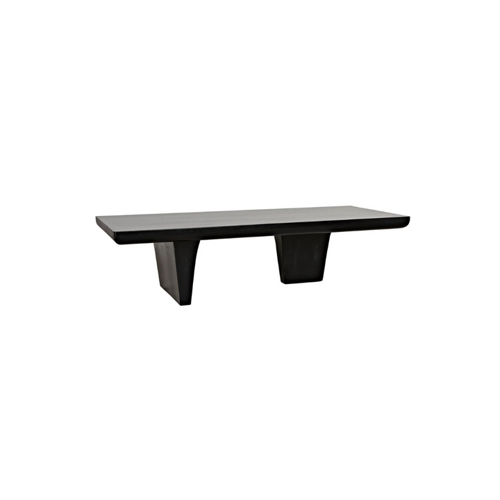 This coffee table features a simple rectangular top with subtly rounded underside edges, and two opposing rudder shape legs echoing nautically inspired modernism. Finished in our handsome Hand Rubbed Black finish.