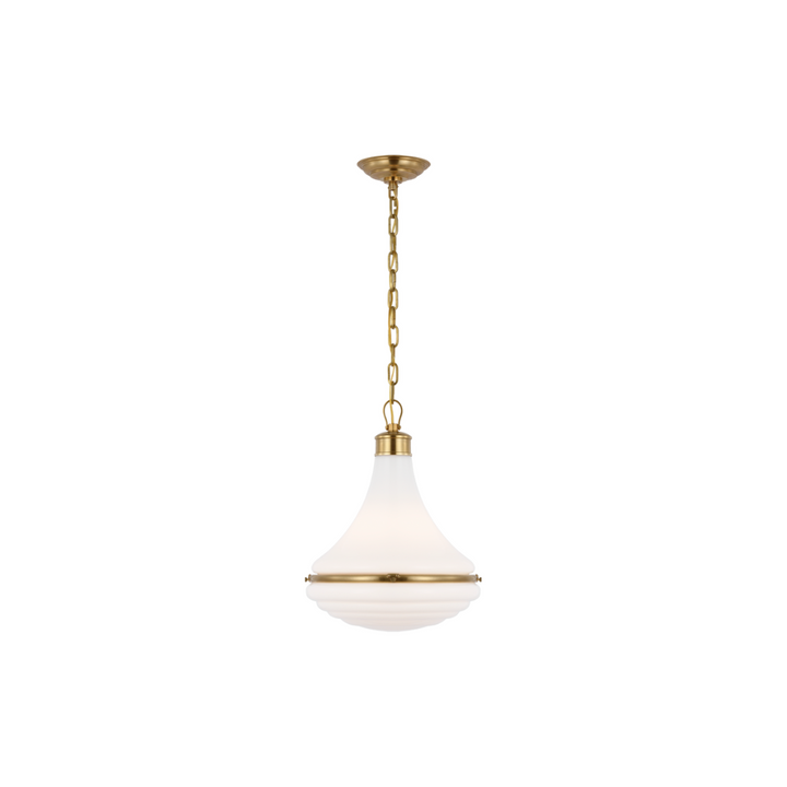 The Wesley Pendant channels vintage European elegance through its bold, substantial design. Featuring white glass paired with finely crafted metal detailing in a hand-rubbed antique brass finish, this pendant adds a sophisticated and refined touch to any setting. Its timeless style ensures it complements both traditional and contemporary interiors with expert craftsmanship and enduring appeal.