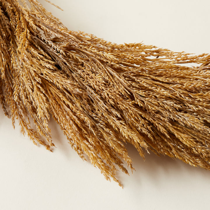Adorn your entryway with the hues of the season with this thoughtfully made wheat wreath. Its dark gold stalks and beautiful organic texture bring a sense of warmth and natural beauty to any space, whether styled indoors or outdoors. This timeless wreath provides a touch of foraged charm that can be styled effortlessly season after season.