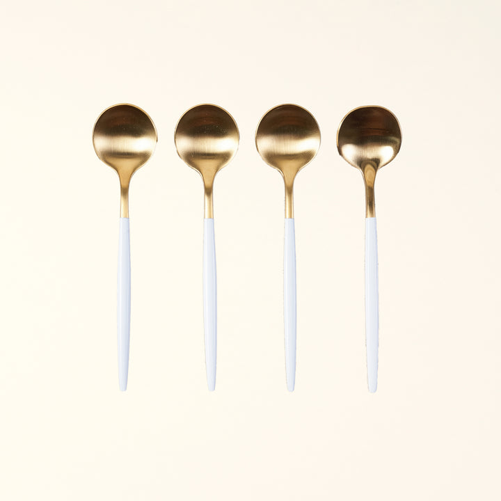 Dress your dining table with beautiful flatware that is far from ordinary. Made from high-quality 18/10 stainless steel with a matte gold finish and modern shapes. The titanium coated handles are ergonomic and balanced. This set of 4 teaspoons is perfect for serving coffee, tea, and small appetizers.