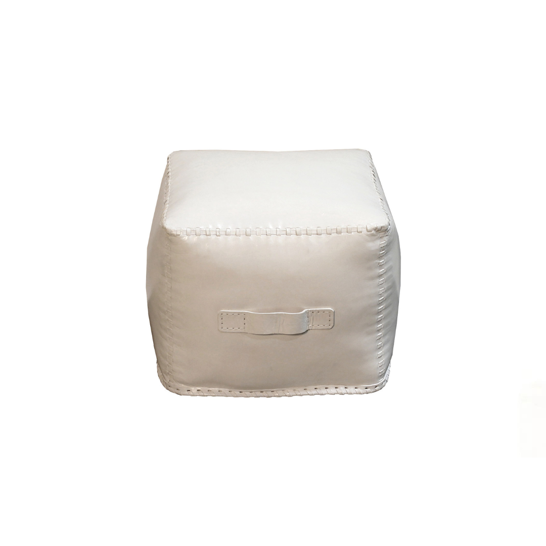 White Leather Pouf
